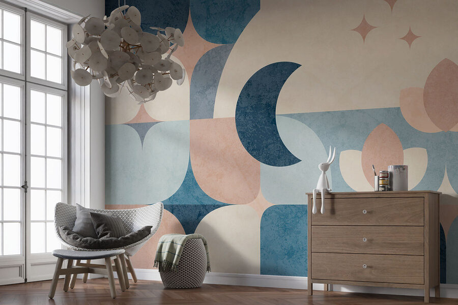 Proměňte jakoukoli stěnu v místo, kde se bude konverzovat, pomocí této úžasné modro-růžové geometrické nástěnné malby. Je jako útulné objetí pro váš pokoj – odvážná, ale uklidňující, s tvary, které tančí po povrchu. Představte si, že popíjíte kávu a ztrácíte se v jeho klidné atmosféře. Každá křivka a úhel vybízí oko k putování a podněcuje nápady pro ty kreativní duše. Tento design, který se skvěle hodí do obývacího pokoje, domácí kanceláře nebo dokonce do hravého dětského pokoje, šeptá teplo a zároveň je výrazný. Přidejte trochu šarmu a sledujte, jak váš prostor ožije. Je to nástěnné umění, které působí jako sen.