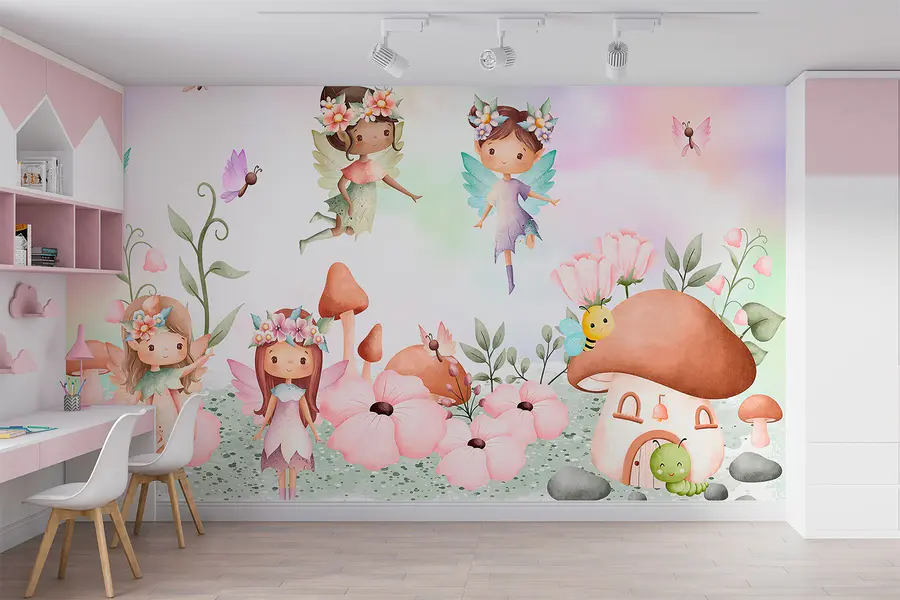 S touto okouzlující nástěnnou malbou s rozkošnou skupinou víl dovádějících v živé zahradě proměníte každou místnost v rozmarnou říši divů. Jen si to představte: malé děti s úžasem hledí na létající víly a rozkvetlé květiny. Je to dokonalá jiskra kouzla pro dětský prostor, která rozproudí jejich představivost jako první třepot motýla. Možná si dokonce vytvoří vlastní pohádky přímo v pokoji! Navíc, kdo by neměl rád malou včelku bzučící kolem houbového domečku? Je to jako vstoupit každý den do pohádkové knihy. Čeká vás opravdové dobrodružství!