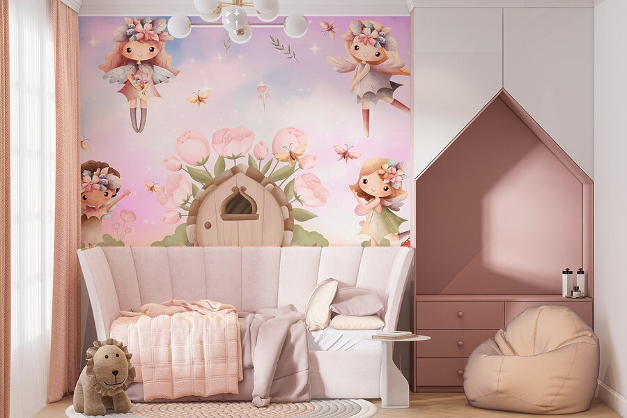 Proměňte jakýkoli prostor v rozmarnou říši divů s touto nádhernou nástěnnou malbou s okouzlující skupinou víl. Představte si zářivé pastelové odstíny, které jemně víří v pozadí, a tato hravá stvoření, která se pohybují kolem, šíří veselí a kouzla. Společně tančí mezi barevnými květinami a třepotajícími se motýly a vyzývají každého, kdo vstoupí, aby se zastavil a usmál. Představte si, jak se dětem rozzáří oči při pohledu na novou kouzelnou stěnu – okamžitě se jim doma rozzáří dobrodružství. Je ideální pro rozproudění představivosti a dodání nádechu fantazie do dětských pokojů nebo dětských pokojíčků. Kdo by nesnil o vílách poletujících nad hlavou?