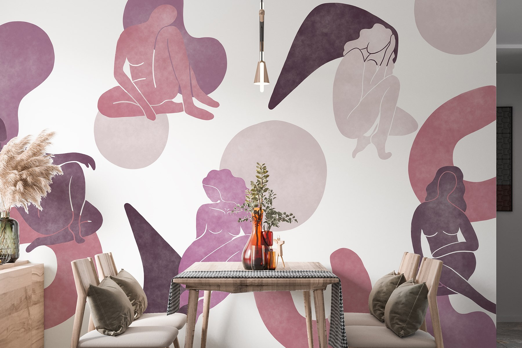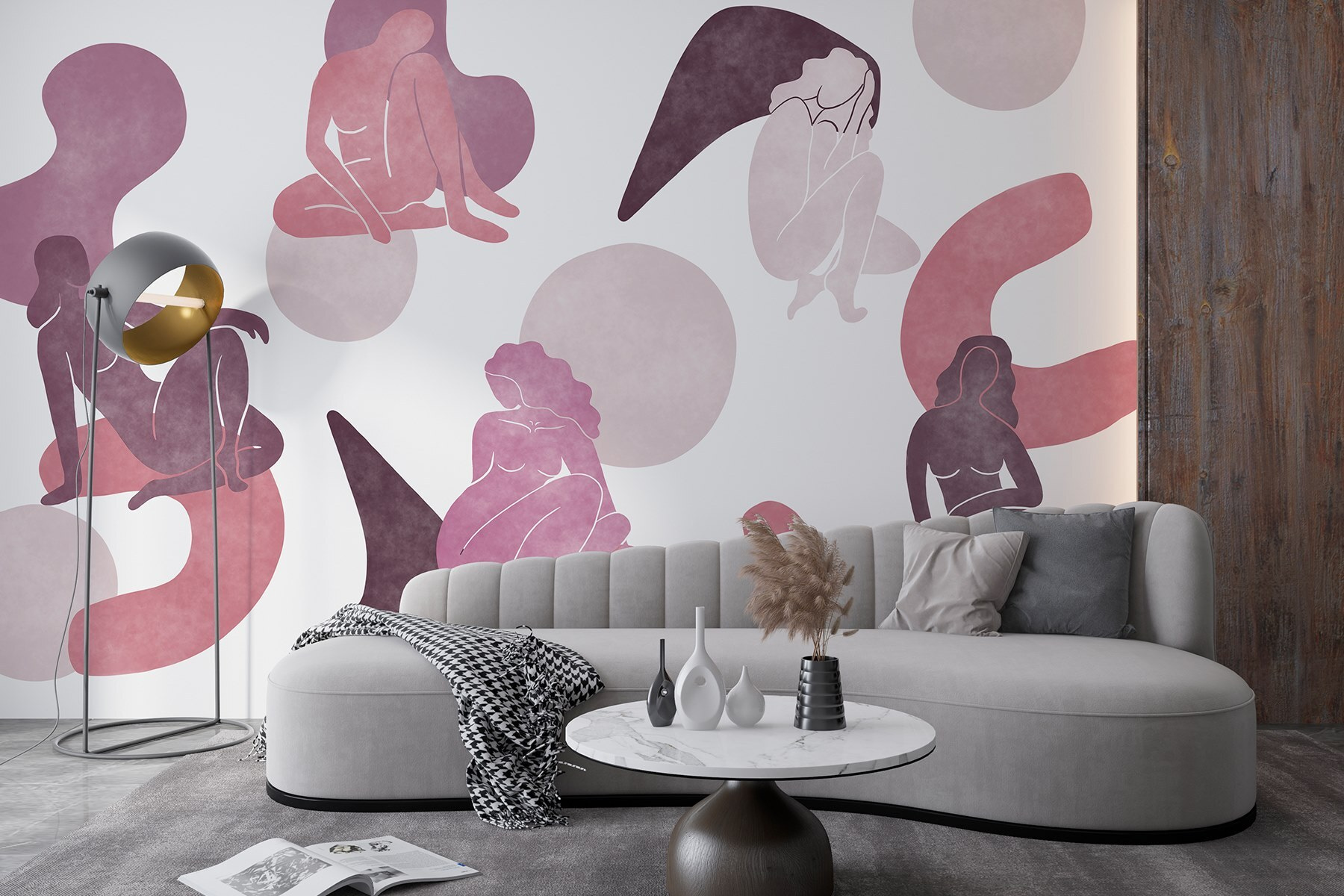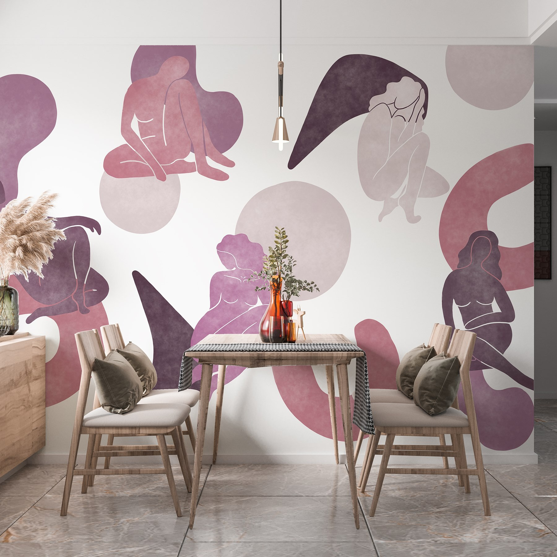 Proměňte obyčejnou zeď v živé místo pro setkávání pomocí této úžasné nástěnné malby se skupinou sedících a pózujících žen. Je to jako pozvat si domů partu uměleckých múz. Jemné odstíny a splývavé tvary vytvářejí uvolněnou atmosféru, díky níž se každý prostor bude cítit teple a příjemně. Představte si přátele popíjející čaj nebo sdílející smích pod tímto krásným pozadím – je ideální pro útulný rozhovor nebo klidnou chvilku s knihou. Design navíc působí osvěžujícím moderním dojmem a zároveň vypráví příběh o přátelství a tvořivosti. Vaše stěna si bude prakticky říkat o komplimenty!