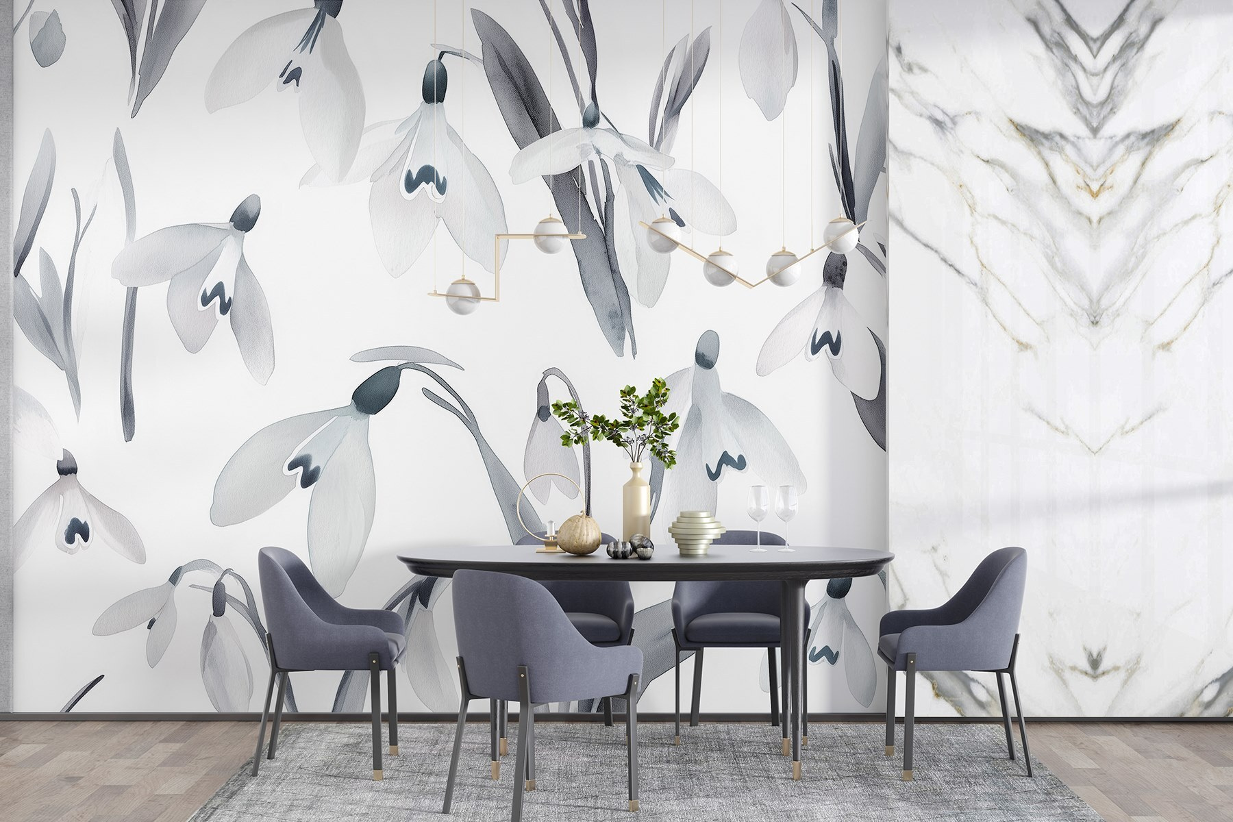 Proměňte jakoukoli místnost díky kouzlu nástěnné malby “Bílé květy s šedými listy”. Tato fototapeta přináší jemnou, přírodní atmosféru, která připomíná klidnou zahradu v jarním dni, bez kýchání alergiků. Je ideální pro chvíle, kdy se chcete jen tak odreagovat s šálkem čaje a ztratit se ve vrstvách jemných květů. Představte si, že se probudíte do této snové scenérie – je to jako kousek přírody přímo u vás doma. Jemné odstíny vytvářejí uklidňující kulisu, díky níž se prostory cítí lehčí a otevřenější. Ať už v útulném zákoutí nebo v prostorném obývacím pokoji, tato nástěnná malba bez námahy udělá dojem a tiše vybízí k teplu a klidu. Kdo by mohl říct ne květinám, které na něj shlížejí ze zdi?