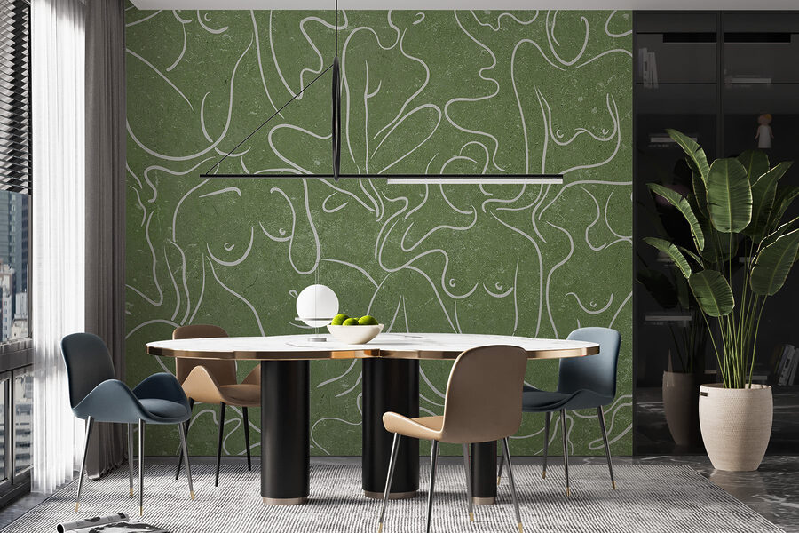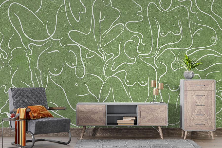 Představujeme vám nástěnnou malbu, která je jako hřejivé objetí pro jakýkoli prostor – představte si útulný kout proměněný ladnými obrysy žen, které se jemně vlní na měkkém zeleném pozadí. Tohle není jen dekorace, ale i zlepšovák nálady! Představte si, jak popíjíte čaj a jste ponořeni do myšlenek, zatímco tyto plynoucí postavy inspirují k tvořivosti a propojení. Přátelé si budou povídat o kráse a jednoduchosti toho všeho, zatímco vy si budete potají užívat komplimenty. Ideální do obývacího pokoje nebo klidné ložnice, vtáhne vás svým jemným šarmem a uměleckou atmosférou. Kdo by řekl, že nástěnné umění může působit tak lákavě?