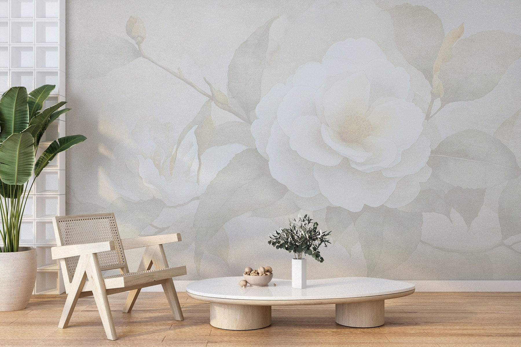 Proměňte svůj prostor díky uklidňujícímu kouzlu nástěnné malby “Bílý květ se zelenými listy”. Tento design přináší do interiéru dotek přírody, díky němuž se každý den budete cítit jako na jemné procházce rozkvetlou zahradou. Představte si to: slunečné odpoledne, oblíbená kniha v ruce a tato nádherná nástěnná malba jako útulné pozadí. Jemná bílá a zelená vytvářejí klidnou atmosféru, která okamžitě pozvedne každou místnost. Je to jako závan čerstvého vzduchu bez kýchání! Tato nástěnná malba se skvěle hodí do obývacích pokojů nebo ložnic a vnese do každodenního života kapku klidu. Navíc je to báječný začátek konverzace, když přijdou přátelé. Připravte se na to, že je ohromíte!