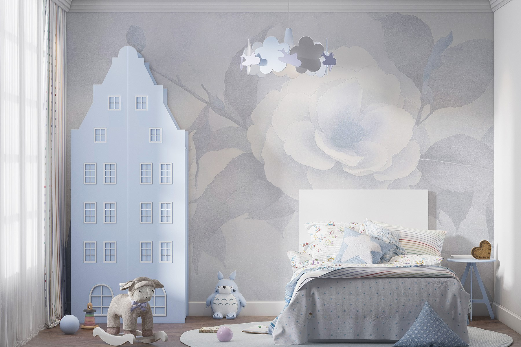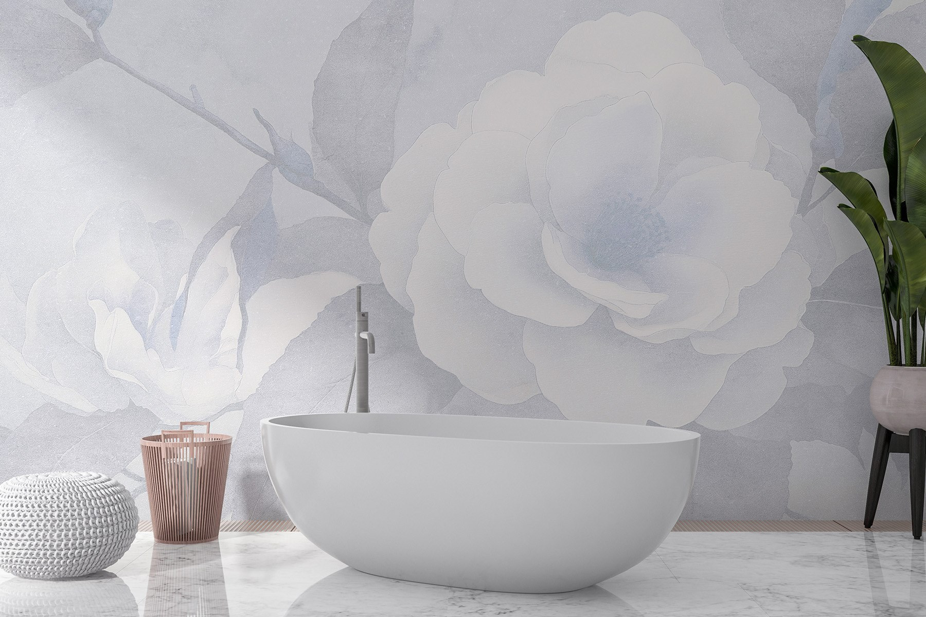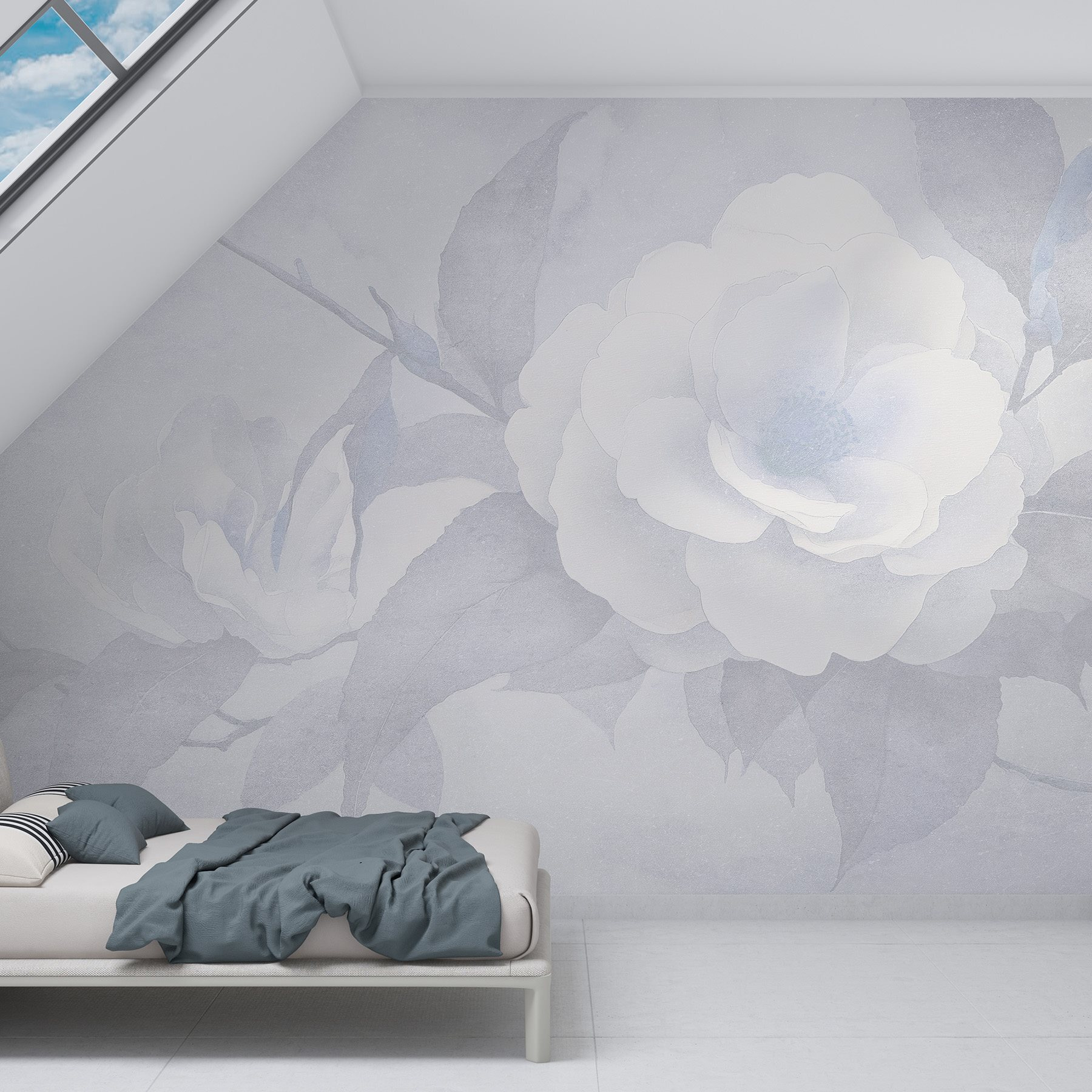 Proměna prostoru může být tak jednoduchá, jako je přidání této nástěnné malby s jemnými bílými květy a listy. Představte si, že se každý den probouzíte s touto klidnou krásou. Je to jako pozvat přírodu do interiéru bez starostí se zaléváním rostlin nebo otravným hmyzem. Jemná paleta vytváří uklidňující atmosféru – ideální pro útulný čtecí koutek nebo klidné útočiště v ložnici. Přátelé se budou zastavovat jen proto, aby ji mohli obdivovat. Navíc vyvolá konverzaci – například: “Je to umění, nebo příroda?” – a kdo nemá rád trochu tajemna ve svém interiéru?