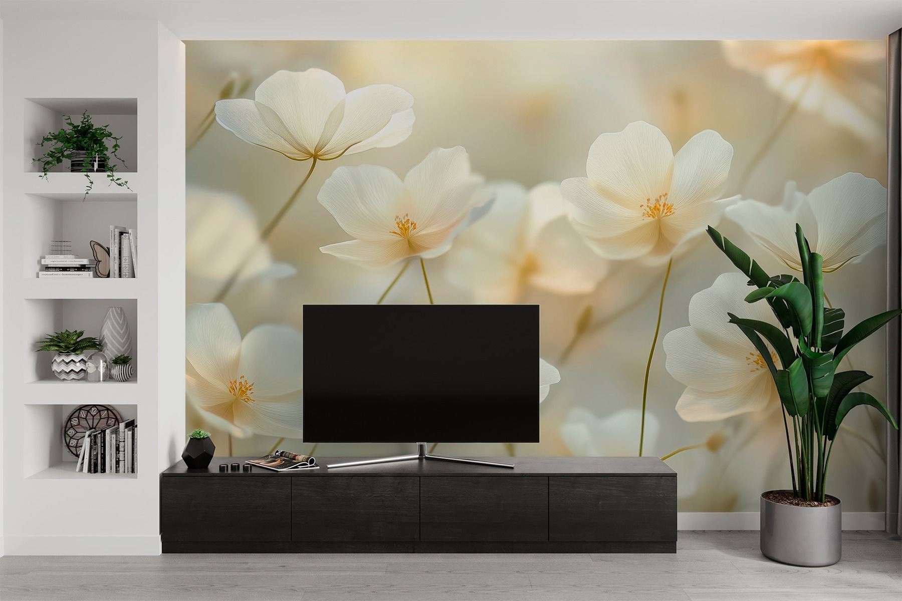 Proměňte jakýkoli prostor pomocí této krásné nástěnné malby s jemnou skupinou bílých květin. Představte si, že vejdete do místnosti a okamžitě se cítíte klidnější, jako byste se procházeli klidnou zahradou. Jemné odstíny a půvabné květy dodávají nádech elegance, aniž by zahlcovaly. Je to jako mít jaro přímo doma, bez nutnosti zalévání! Tato nástěnná malba, která se skvěle hodí do útulného čtecího koutku nebo světlého jídelního koutu, vybízí k hřejivosti a klidu. Přátelé se vás určitě budou ptát, kde jste našli tak okouzlující kousek. Je to všechno o těch malých detailech, které dělají velký rozdíl. Pozvedněte svůj dekor jen o kousek – protože kdo by nepotřeboval trochu květinového kouzla?