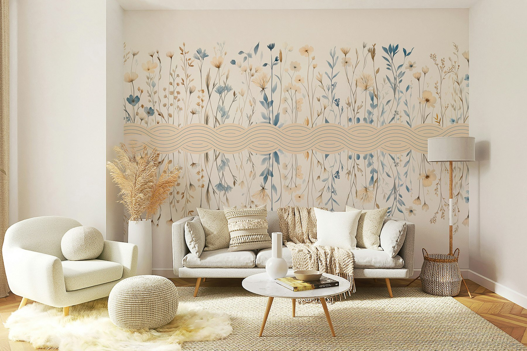Proměňte jakýkoli prostor v klidné útočiště s touto nádhernou nástěnnou malbou s květinovým vzorem v okouzlující modré a jemné bílé barvě. Představte si, že vejdete do místnosti, kde se jemně pohupují křehké květy a přinášejí přívaly klidu a radosti. Uklidňující barevná paleta navozuje tento uvolněný pocit, jako když se za bezvětrného dne procházíte klidnou zahradou. Tato nástěnná malba, která je ideální pro útulný obývací pokoj nebo klidné útočiště v ložnici, přináší kouzlo a rozmar. Je čas zahodit obyčejné stěny a přijmout trochu květinového kouzla – vaše stěny si zaslouží modernizaci. Navíc je to jako mít zahradu, která nikdy neuvadne!