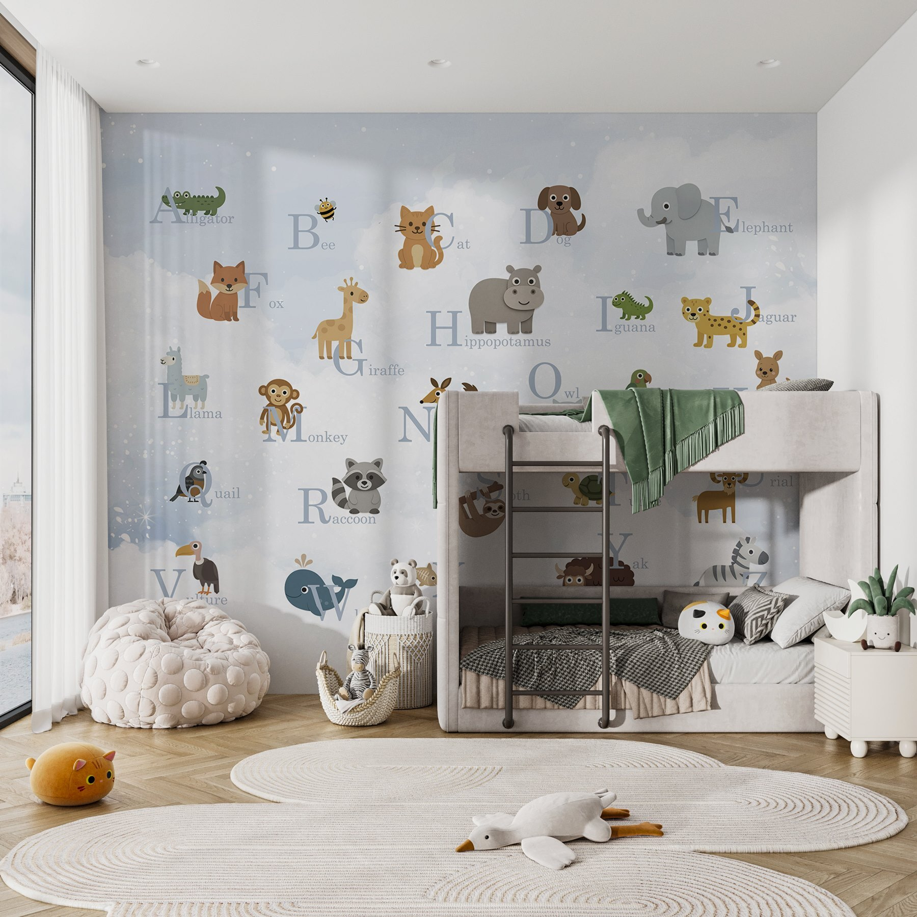 S touto nádhernou fototapetou, která obsahuje řadu okouzlujících zvířátek a odpovídající písmena, proměníte dětský pokoj v živou džungli plnou zábavy. Je to jako zoo a abeceda v jednom! Představte si hravou lišku, hloupou žirafu a moudrou sovu, jak přinášejí dobrodružství přímo na vaše stěny – zaručeně vzbudí zvědavost a hihňání.