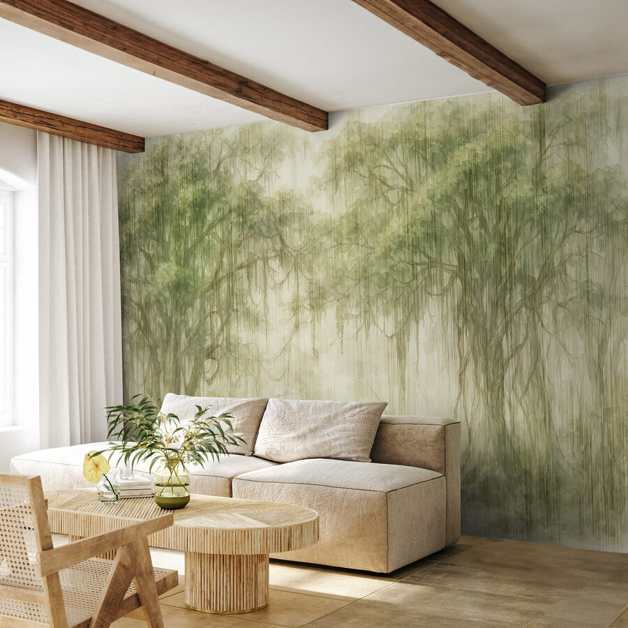 Ponořte svůj prostor do klidu s touto okouzlující nástěnnou malbou mlžného lesa. Je to jako vstoupit do snu, kde stromy šeptají tajemství a vzduch houstne tajemstvím. Představte si, jak popíjíte ranní kávu obklopeni jemnými odstíny zelené a hnědé, zatímco sluneční světlo proniká skrz mlžné větve. Tato nástěnná malba dodá přírodě nádech klidu, díky němuž se i ty nejrušnější dny budou zdát o něco pomalejší. Perfektně se hodí do útulného obývacího pokoje nebo klidné ložnice, vybízí ke snění a zůstává dokonale nerušená. Kdo by nechtěl mít klidný únik přímo u sebe doma?