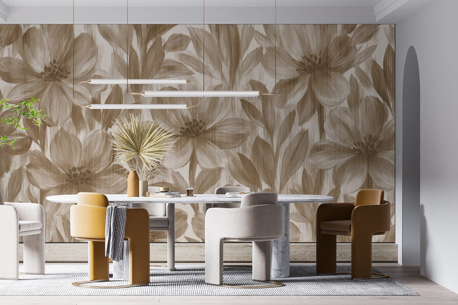 Proměňte každou místnost v útulné útočiště pomocí těchto úžasných nástěnných maleb s jemnými květinovými vzory v zemitých tónech. Představte si, že vstoupíte do prostoru, kde po stěnách tančí něžné květy a navozují pocit klidu a tepla. Ideální do obývacího pokoje, ložnice nebo třeba do malého čtecího koutku, kde vládne klid. Je to jako závan čerstvého vzduchu nebo hřejivé objetí v chladném dni. Přátelé se mohou zdržet, povídat si o umění a dekoru, zatímco vy se budete kochat klidnou atmosférou. Milovníci přírody budou zbožňovat způsob, jakým tyto květinové vzory vnášejí do interiéru venkovní prostředí a vytvářejí atmosféru, která působí živě a zároveň uklidňujícím dojmem. Jen do toho, nechte tyto krásné květy rozkvést ve svém domově.