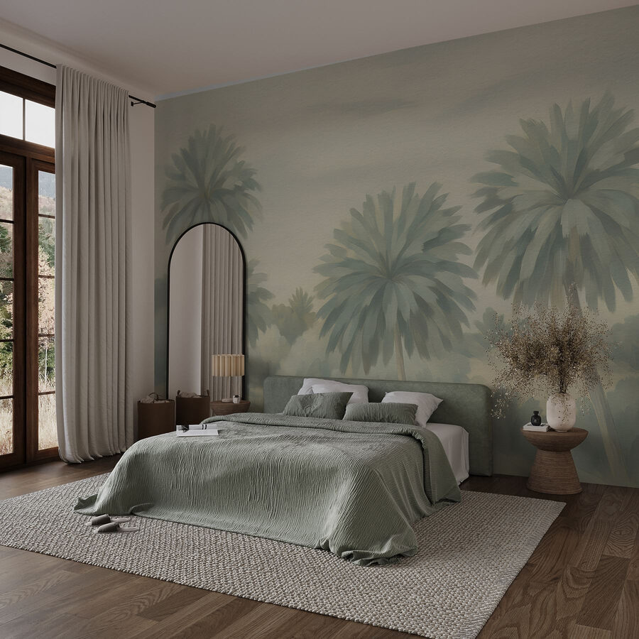 Proměňte každou místnost v tropickou oázu s touto úžasnou nástěnnou malbou palmy. Je to jako přenést kousek ráje do interiéru, aniž by hrozilo riziko spálení od slunce. Představte si to: popíjíte ranní kávu a přitom se díváte na tyto něžné obry pohupující se v jemném vánku. Tlumené tóny vytvářejí klidné pozadí, ideální pro relaxaci. Ideální do obývacích pokojů, ložnic nebo i útulných čtecích koutků, dodá dotek přírody bez údržby skutečných rostlin. Tato nástěnná malba vybízí ke snění o písečných plážích a teplém vánku. Kdo by to nemiloval?