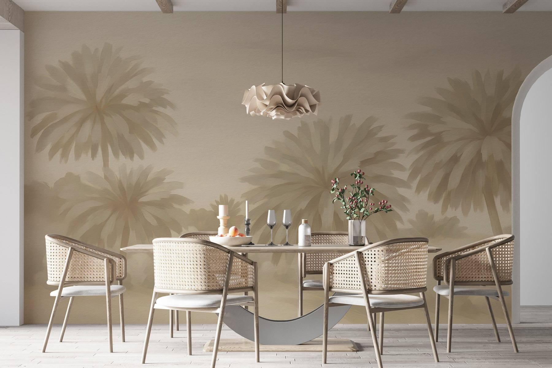 Vneste do svého prostoru kousek ráje díky nástěnné malbě “Skupina palem”. Představte si lenošení za líného odpoledne, kdy se v obývacím pokoji jemně pohupují měkké, uklidňující odstíny palmových listů. Tato nástěnná malba nejen zdobí, ale vybízí ke snění o slunečných plážích a bezstarostných vibracích, takže nudné stěny se cítí živé a plné tepla. Je ideální pro umístění do útulného zákoutí nebo pro oživení společného prostoru. Jemné detaily ve vás vyvolají touhu natáhnout ruku a dotknout se jich. Není to jen obklad na stěnu; je to připomínka toho, že někde je vždy tropické místo, které volá vaše jméno. A kdo by to nechtěl?