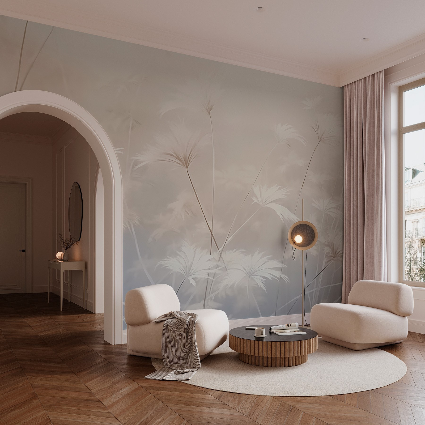 Proměňte svůj prostor pomocí této okouzlující nástěnné malby bílých květin ztracených ve snové mlze. Představte si, že vstoupíte do místnosti, kde příroda tiše šeptá a zve ke klidu a míru přímo u vašich dveří. Je to jako mít klidnou zahradu bez otravných včel! Jemné květy jako by tančily v mlze a vytvářely klidnou atmosféru, která vybízí ke snění a relaxaci.