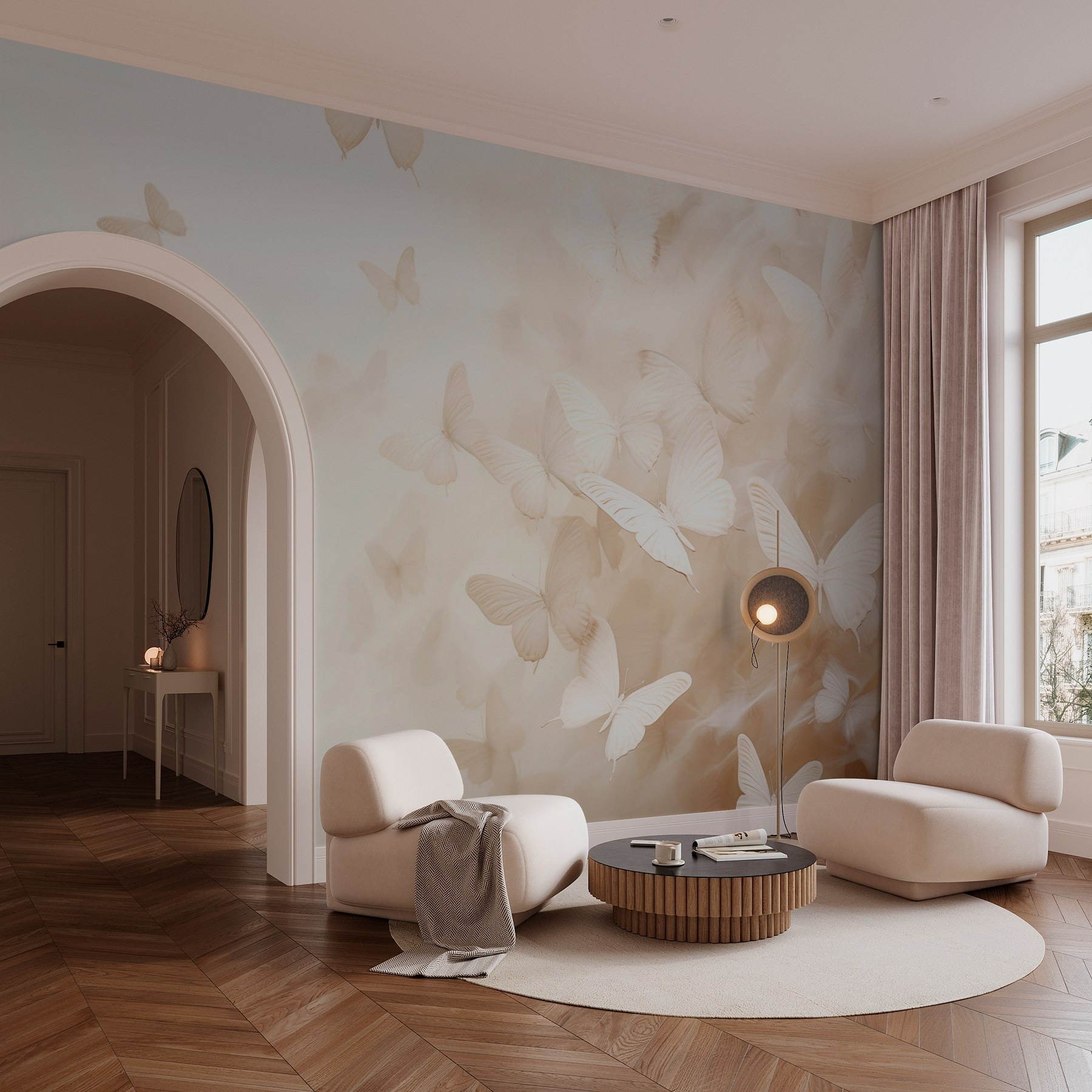 Představte si útulný čtecí koutek nebo klidnou ložnici, kde tyto lehké, splývavé vzory dodají uklidňující nádech. Každý pohled na motýly vzbuzuje pocit svobody a úžasu, jako by mohli každou chvíli vzlétnout. Přátelé se projdou, zastaví se a povzdechnou si – je to sladký únik, který jen čeká, až se stane. Jaký nádherný způsob, jak oživit každou zeď!