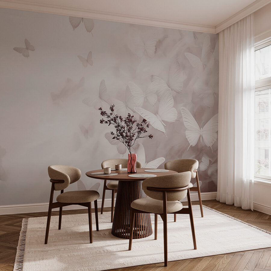 S touto zasněnou nástěnnou malbou vzlétajících motýlů proměníte každou místnost v klidné útočiště. Představte si, že vstoupíte do světa, kde tato křehká stvoření tančí na jemném, mlhavém pozadí. Je to jako jemná připomínka toho, že krásu lze najít i v každodenních okamžicích. Představte si útulný čtecí koutek nebo klidnou stěnu v ložnici, kde můžete uniknout životnímu chaosu – tato nástěnná malba přesně to dokáže. Je ideální pro vytvoření klidné atmosféry nebo rozproudění trochy rozmaru. Kdo by nechtěl cítit tu chvějivou radost pokaždé, když jde kolem? Je čas nechat motýly roztáhnout křídla a rozzářit svůj prostor!