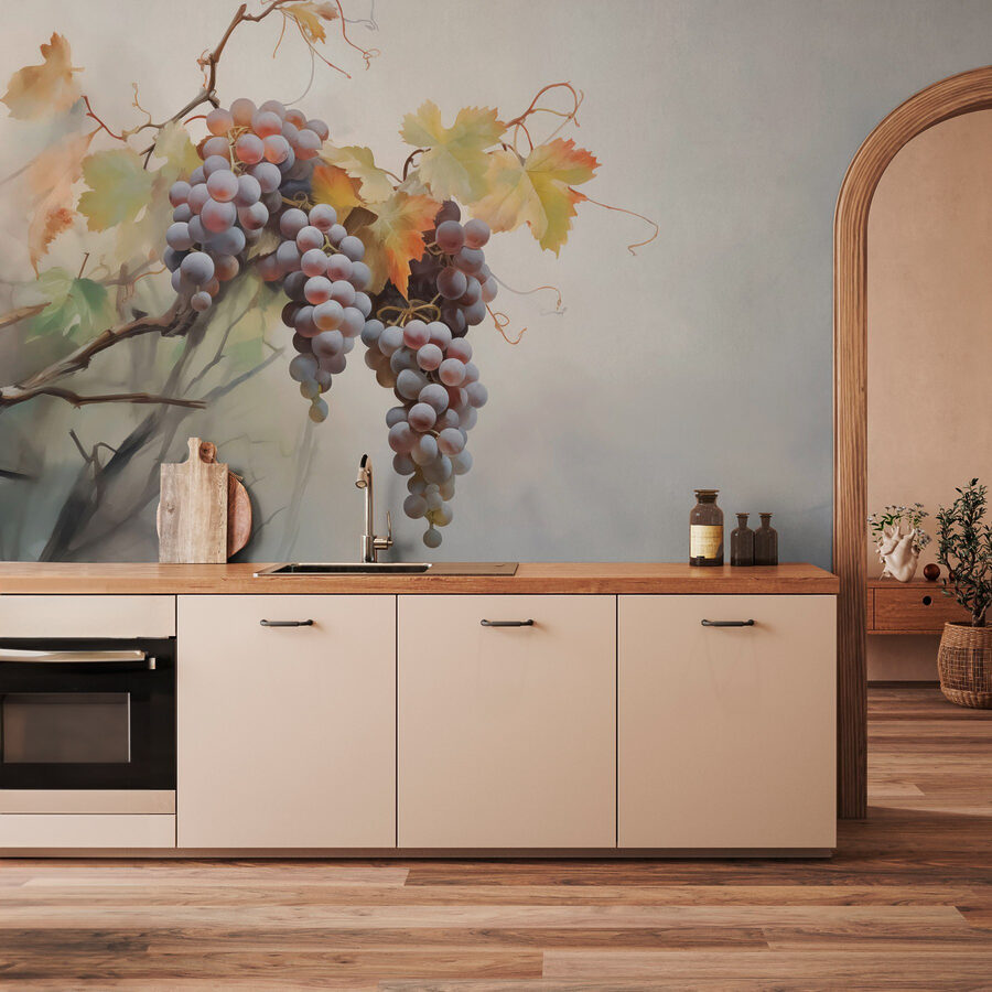 Proměňte svůj prostor pomocí této okouzlující nástěnné malby se svazkem hroznů na vinné révě. Představte si, že vstoupíte do místnosti, která bude vypadat jako sluncem zalitá vinice – svěží, živé odstíny a jemná, zasněná atmosféra. Je to jako přenést kousek přírody do interiéru, ideální pro oslazení často nudné stěny. Přátelé se budou cítit pozváni, aby se opřeli a vychutnali si sklenku vína, i když je to jen hroznová šťáva. Tato nástěnná malba nejen upoutá pozornost, ale také vyvolá rozhovory o líných odpoledních, piknicích a všech těch nádherných okamžicích, které dělají život o něco sladší. Perfektně se hodí do kuchyní, jídelen nebo kamkoli, kde by se hodil nádech přírodního kouzla!