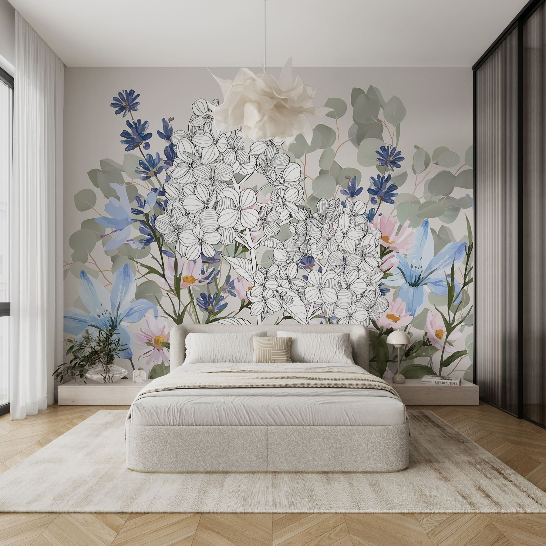 Proměňte svůj prostor pomocí této okouzlující nástěnné malby s jemnými květy v jemných pastelových odstínech. Je to jako přenést tajnou zahradu do interiéru – jen bez včel. Představte si, že se probudíte do zasněné směsi květů a jemné zeleně, která do vašeho každodenního života vnese kapku klidu. Ideální do každé místnosti, kde se snoubí elegance s ležérní atmosférou, díky níž se snadno budete cítit jako doma. Navíc, kdo by nemiloval květiny, které nikdy neuvadnou? S každým pohledem nechte tyto uklidňující barvy vzbudit radost a možná vás inspirují k příjemnému čtení se šálkem čaje. Vaše stěny si tuto květinovou náruč zaslouží!