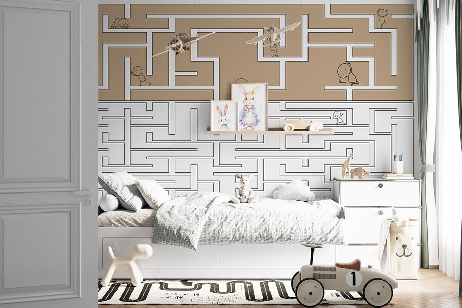 Vneste do každého prostoru hravou atmosféru s touto okouzlující fototapetou s herním výjevem bludiště. Představte si malé postavičky, jak bloudí mezi zákrutami a každá z nich prožívá své vlastní mini dobrodružství. Ideální pro děti (a mladé v srdci), podněcuje kreativitu a představivost. Představte si to: dítě vzrušeně ukazuje na nástěnnou malbu a ztraceně hledá cestu ven. Barvy jsou teplé a přívětivé a dodávají místnosti útulný pocit. Není to jen dekorace, je to hřiště pro mysl! Perfektně se hodí do dětského pokoje nebo herny a zabaví malé průzkumníky na dlouhé hodiny. Nechte zábavu začít!
