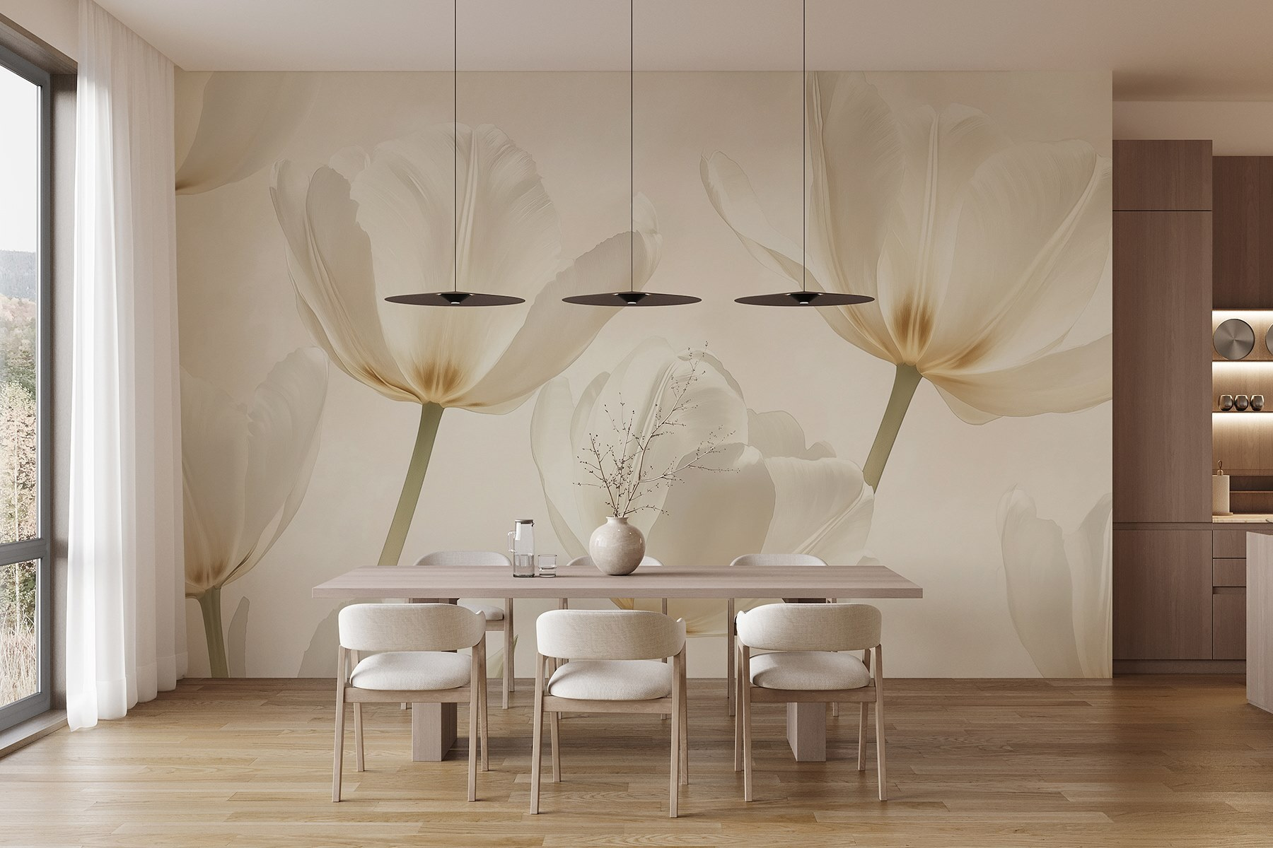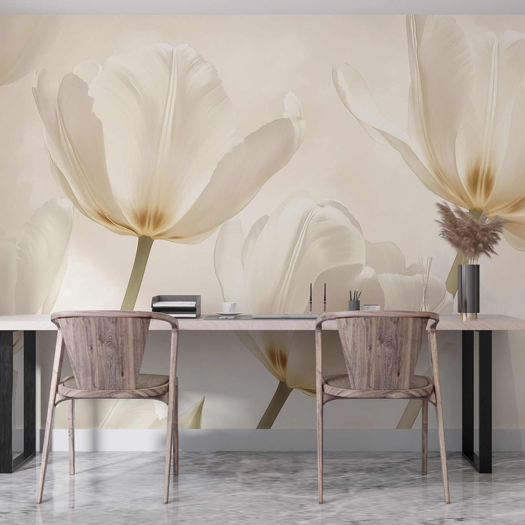 Proměňte jakýkoli prostor pomocí nástěnné malby “Skupina bílých květin”. Představte si, že se každé ráno probouzíte s těmito křehkými kráskami! Klidná paleta jemné bílé přináší klidnou, vzdušnou atmosféru, která působí jako jemné objetí. Ať už se jedná o útulný čtecí koutek nebo živý obývací pokoj, tato nástěnná malba našeptává eleganci a klid. Je to jako přenést do interiéru klidnou zahradu – bez konve a otravného hmyzu. Hosté si ji mohou dokonce splést s klidným obrazem. Ideální pro ty, kteří chtějí dotek přírody, ale bez zbytečného povyku. Skutečný závan čerstvého vzduchu pro každou stěnu!