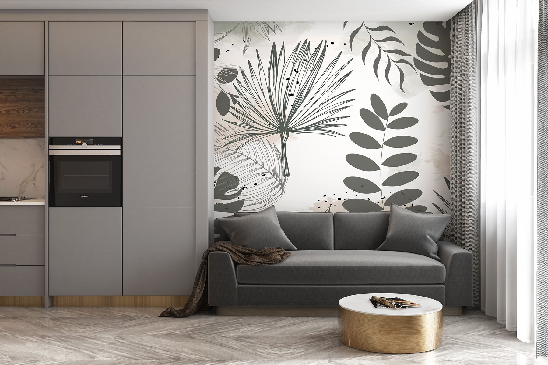 S touto botanickou nástěnnou malbou inspirovanou přírodou proměníte každou místnost v klidné útočiště. Představte si, že se probouzíte do jemného tance listové zeleně a hravých tahů. Je to jako přenést se do přírody, ale bez hmyzu – naštěstí! Uklidňující paleta zemitých tónů se bez námahy kombinuje s jakýmkoli interiérem, takže je snadné ji sladit. Ať už se jedná o útulný čtecí koutek nebo živou jídelnu, tato nástěnná malba našeptává “relaxace”. Hosté se budou zdržovat, obdivovat uvolněnou atmosféru, a kdo ví – možná to vyvolá konverzaci o tropických útěcích a vysněných dovolených!