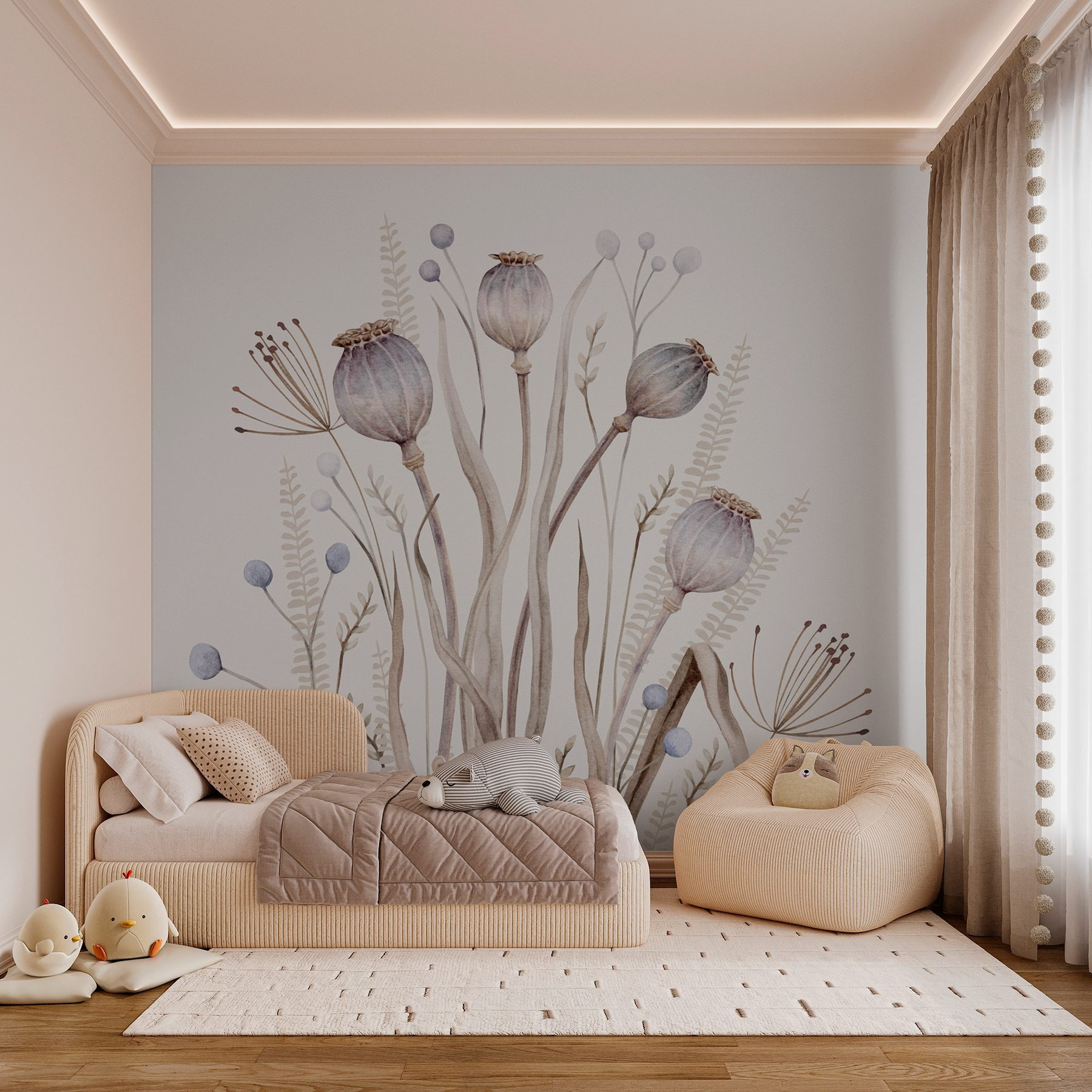 S touto okouzlující akvarelovou nástěnnou malbou s květinami a rostlinami proměníte každou místnost v klidnou zahradu. Přináší kapku přírody přímo na vaše stěny a našeptává vašemu prostoru jemnou eleganci a osvěžující kouzlo. Představte si, že se každé ráno při popíjení kávy procházíte po klidné louce – zní to snově, že? Jemné barvy vytvářejí klidnou atmosféru, takže se skvěle hodí do útulných zákoutí nebo živých obývacích pokojů. Možná se u vás dokonce budou zdržovat přátelé, jen aby obdivovali váš elegantní dekor. Jednoduchá, stylová a příjemná nástěnná malba je jako závan čerstvého vzduchu – bez alergií!