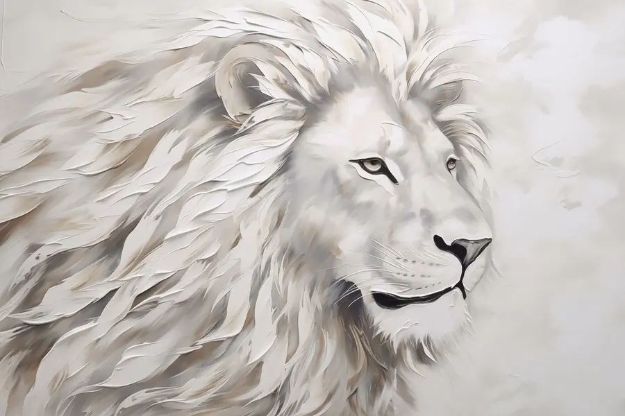 Vstupte do světa, v němž je středem pozornosti klidný bílý lev, který do každé místnosti snadno vnese nádech divoké elegance. Tato nástěnná malba není jen uměleckým dílem, je to prohlášení. Představte si, že kolem ní každý den procházíte a cítíte tichou sílu vyzařující z těch něžných očí. Lví hříva, splývající jako měkké obláčky, může právě inspirovat snění o dobrodružstvích v dalekých zemích nebo útulné večery strávené vzpomínáním na divoké cesty životem.