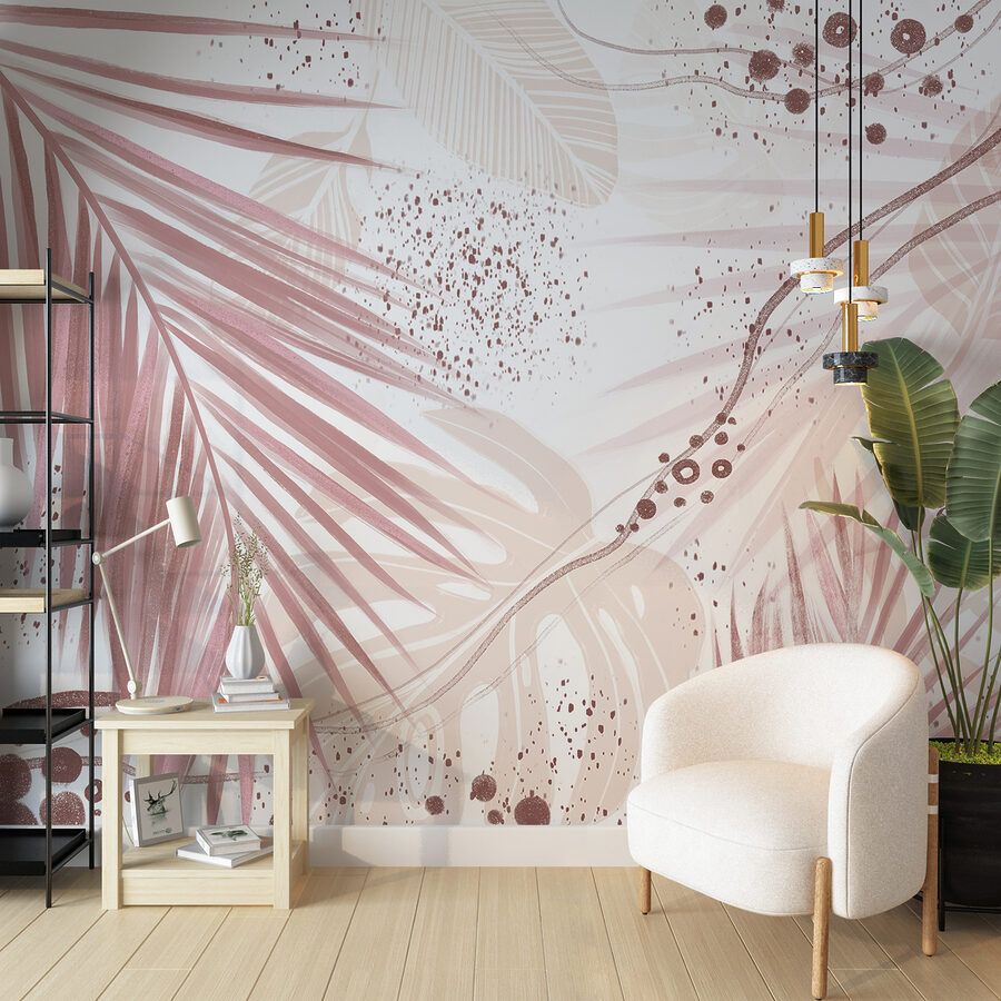 Složité palmové listy a abstraktní vzory smíchané s jemnými růžovými a zemitými tóny… to je jako sen milovníků přírody! Je ideální pro ozvláštnění vašeho obývacího pokoje, ložnice nebo třeba domácí kanceláře. Co by to bylo za život bez špetky kreativity? Pokaždé, když vejdete do místnosti, je to jako jemné objetí od matky přírody – malý únik od každodenního shonu.