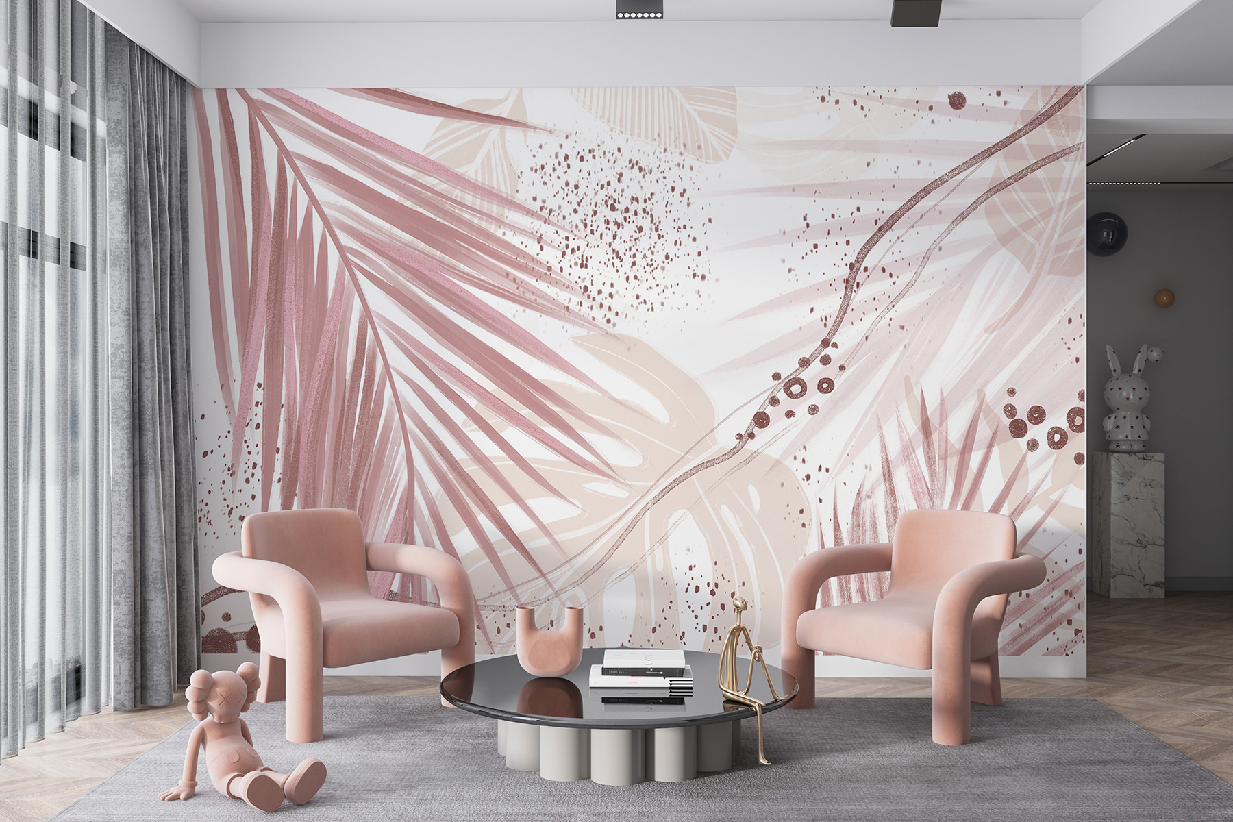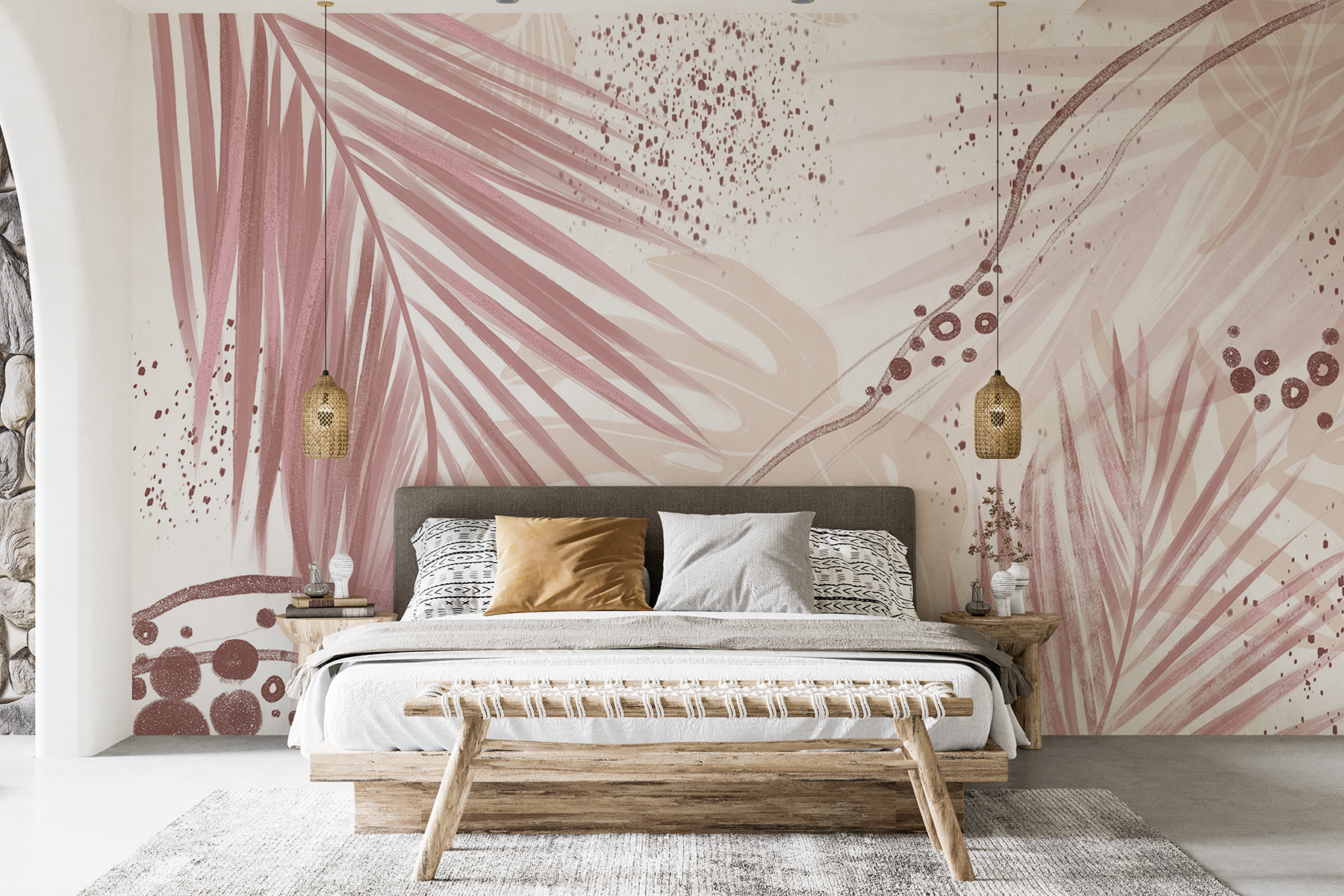 Složité palmové listy a abstraktní vzory smíchané s jemnými růžovými a zemitými tóny… to je jako sen milovníků přírody! Je ideální pro ozvláštnění vašeho obývacího pokoje, ložnice nebo třeba domácí kanceláře. Co by to bylo za život bez špetky kreativity? Pokaždé, když vejdete do místnosti, je to jako jemné objetí od matky přírody – malý únik od každodenního shonu.