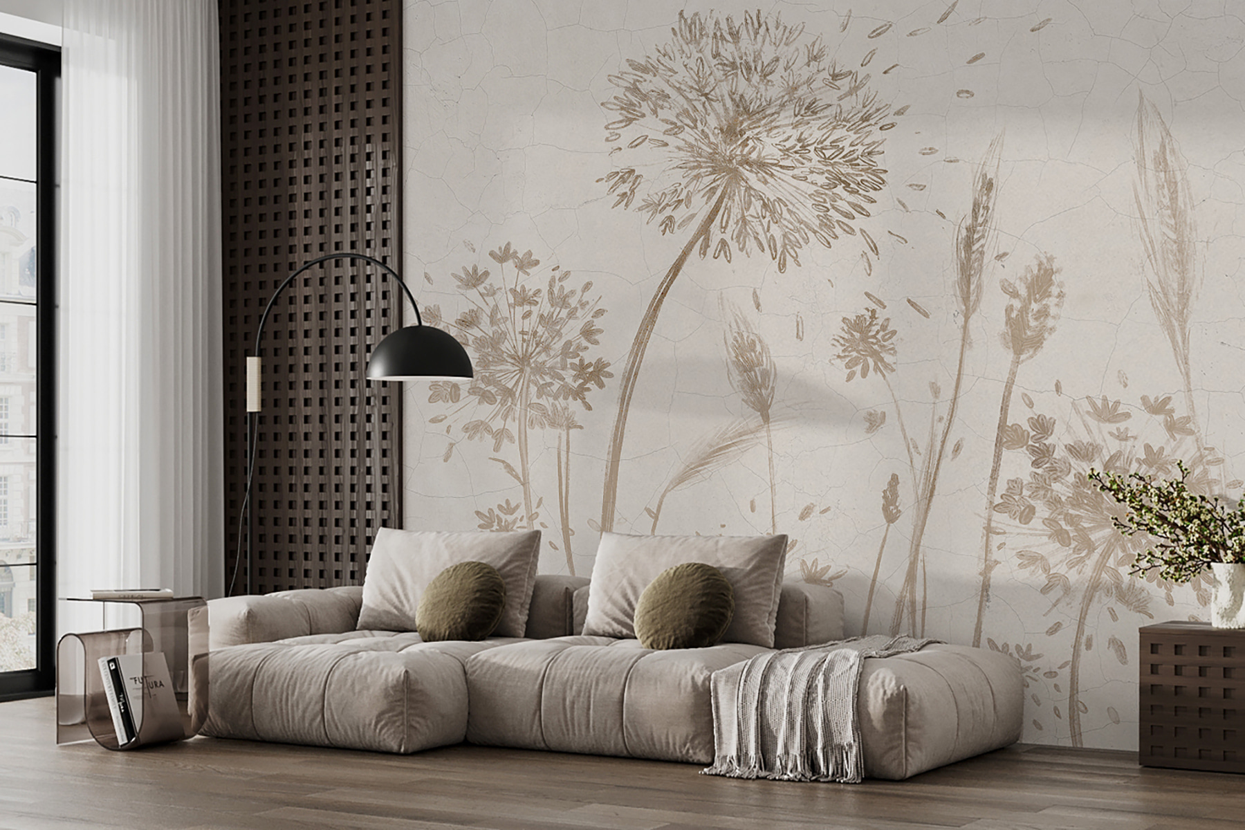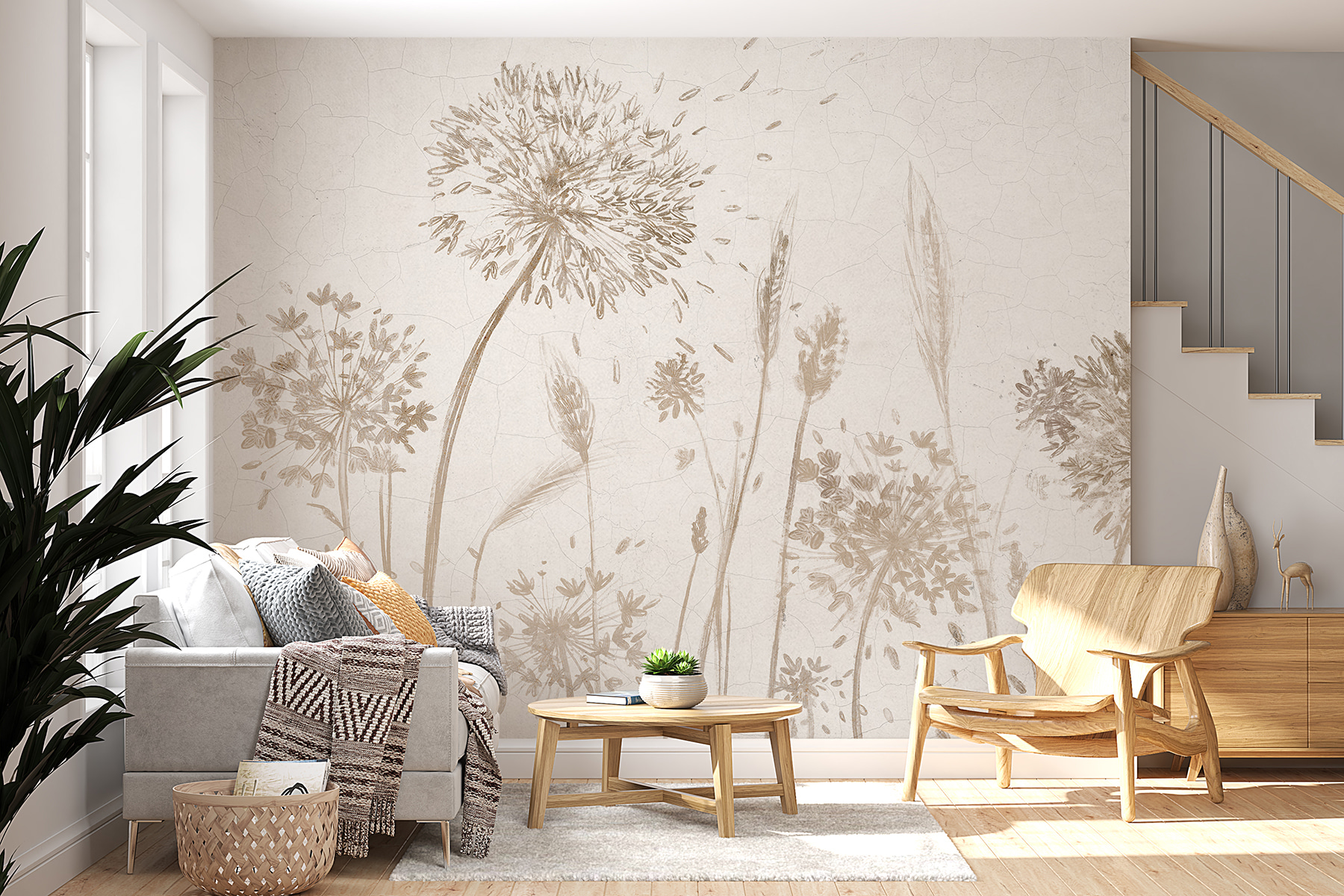 Představte si, že přenesete klid a krásu přírody přímo do svého pokoje. Přesně to dělají “Fototapety w07921” – jsou jako závan čerstvého vzduchu na vašich stěnách. Představte si křehké polní květy a půvabné pampelišky, jemně načrtnuté v jemných hnědých a béžových barvách, které se pohupují jako v letním vánku. Praskliny v pozadí mu dodávají rustikální, vintage kouzlo – jako by ho políbil čas…