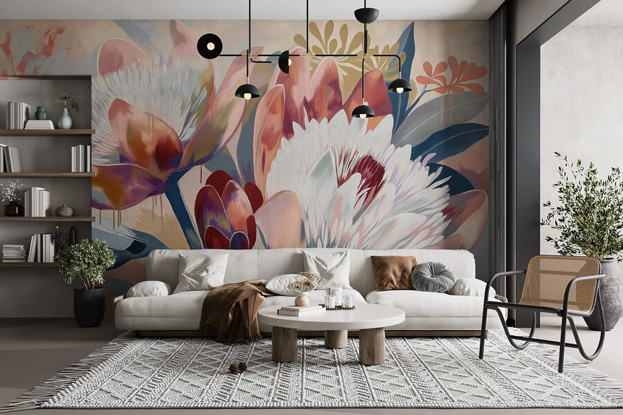 Zde jsou nekonečné možnosti – odvažte se snít. S teplou růžovou, jemnou modrou a příměsí zemitých tónů působí tato nástěnná malba jako hřejivé objetí v chladném dni. Uvažujete o přestavbě nebo jen chcete do svého života dostat trochu více krásy? Tohle je vaše volba. Přiznejme si to, kdo by nechtěl mít doma svůj vlastní kousek umění inspirovaný přírodou?