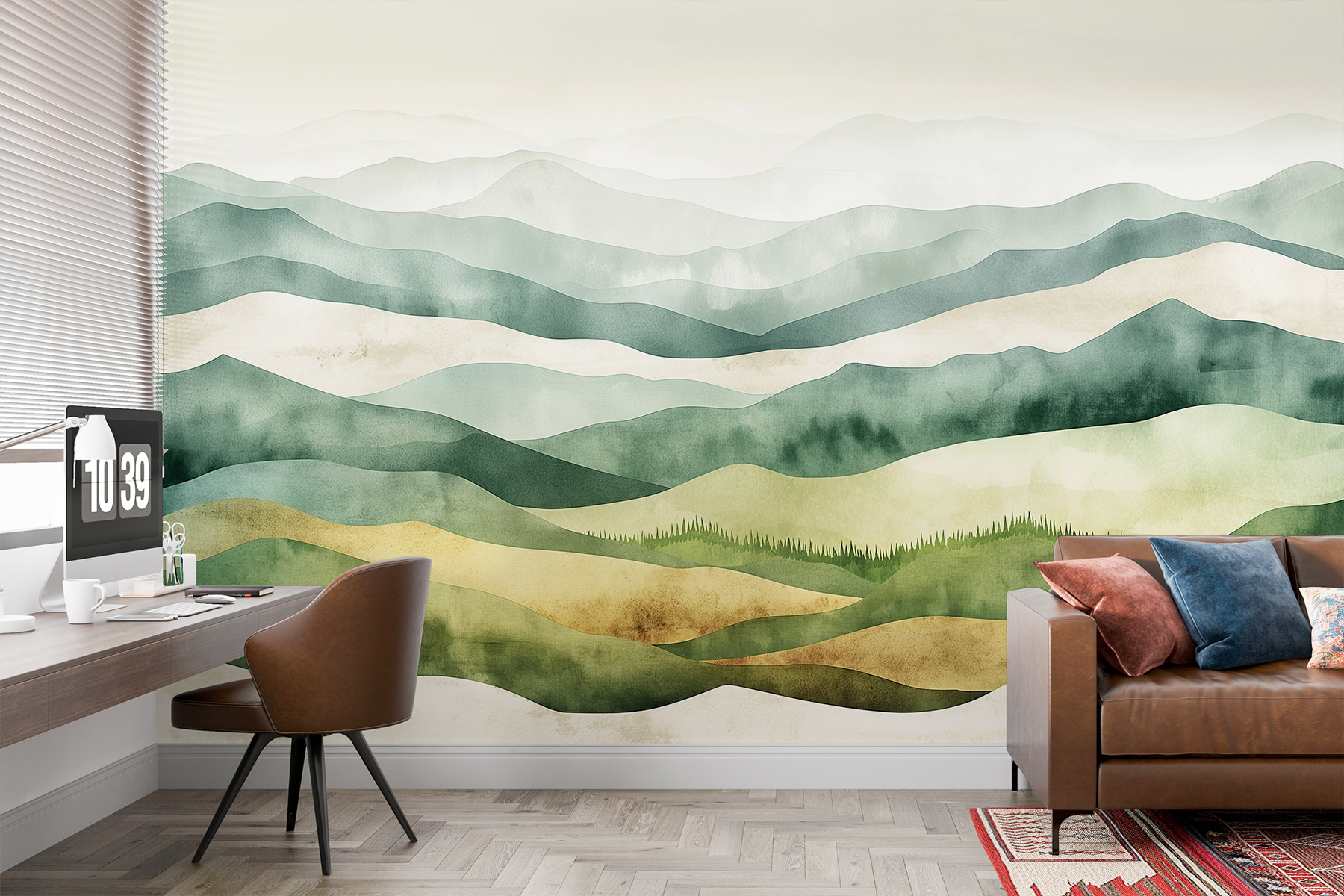 Představte si, že máte na zdi tuto úžasnou akvarelovou fototapetu s příznačným názvem “Nástěnné malby w07950” – je to jako přenést klidnou krásu přírody do interiéru! Tato nástěnná malba, zastrčená v kategoriích “Oblíbené nástěnné malby” a “Nástěnné malby příroda”, je také lahůdkou pro fanoušky akvarelového umění. Vrstvy mlžných kopců se jemně převalují přes plátno a mísí se v nich odstíny zelené a jemné béžové tak, že to prostě uklidňuje duši.