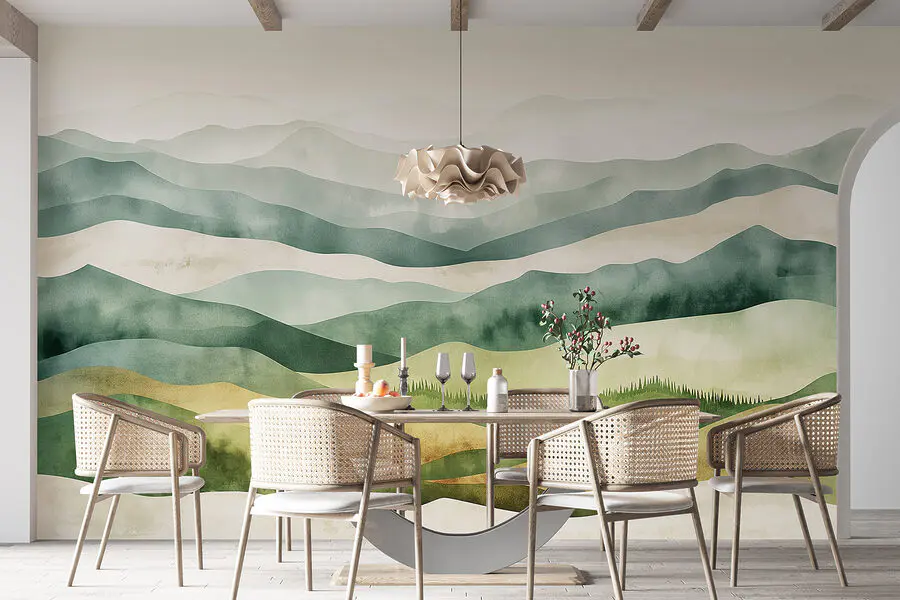 Představte si, že máte na zdi tuto úžasnou akvarelovou fototapetu s příznačným názvem “Nástěnné malby w07950” – je to jako přenést klidnou krásu přírody do interiéru! Tato nástěnná malba, zastrčená v kategoriích “Oblíbené nástěnné malby” a “Nástěnné malby příroda”, je také lahůdkou pro fanoušky akvarelového umění. Vrstvy mlžných kopců se jemně převalují přes plátno a mísí se v nich odstíny zelené a jemné béžové tak, že to prostě uklidňuje duši.
