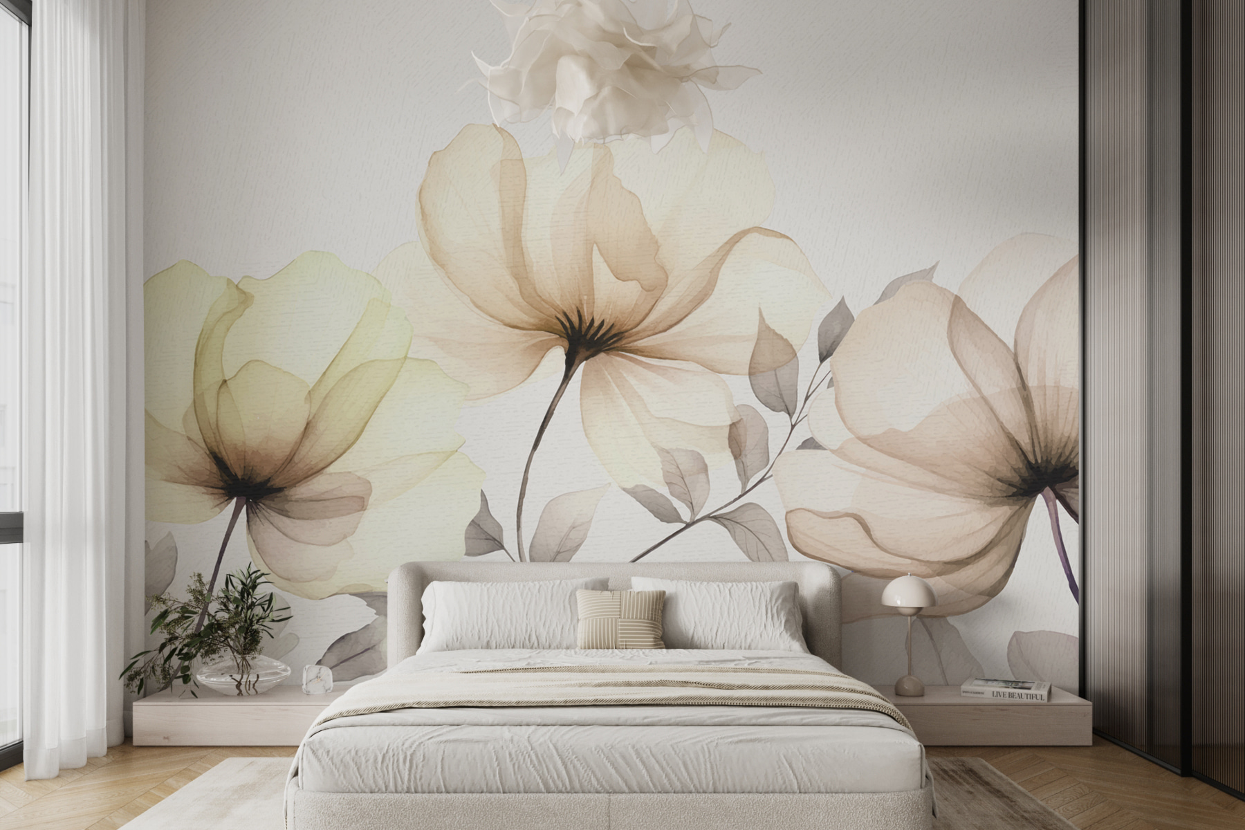 Proměňte každou místnost pomocí této okouzlující nástěnné malby s jemnými květinami tančícími ve světle. Představte si, že vstoupíte do klidné zahrady, kde měkké odstíny a jemné tvary vytvářejí atmosféru, která našeptává relaxaci. Představte si ji v útulném čtecím koutku, kde oživí odpolední čaj nebo dobrou knihu. Díky akvarelovému efektu působí jako snový únik, který zjemňuje hrany každodenního života. Přátelé se možná zeptají, zda jste tajně pečovali o zahradu; kdo by se nechtěl kochat takovou krásou? Tato nástěnná malba je ideální pro obytné prostory, které touží po doteku přírody a uměleckého díla, a je jako závan čerstvého vzduchu pro vaše stěny.