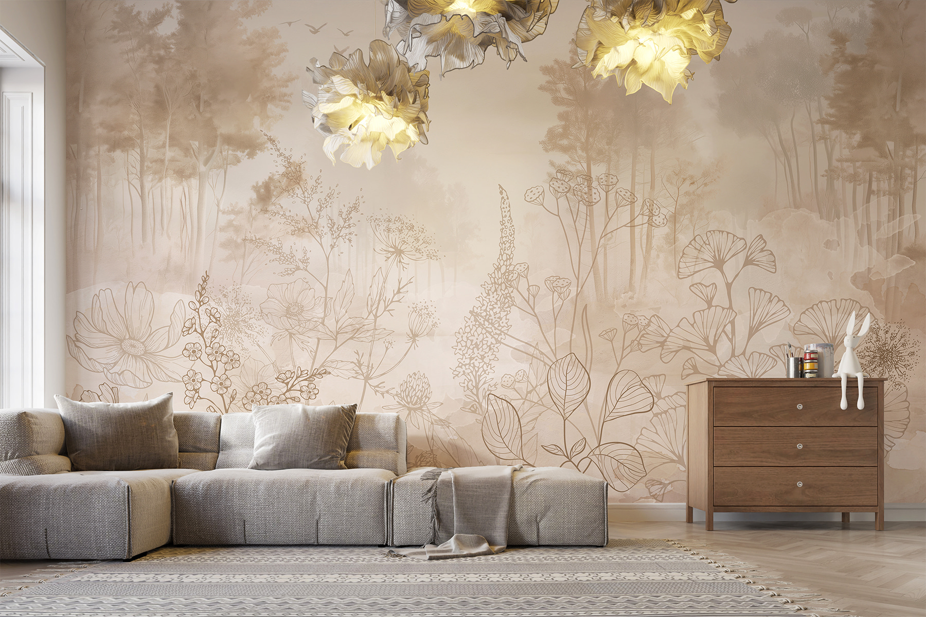 Spadá do kategorie Oblíbené nástěnné malby, Příroda, Vzhled dřeva a Dřevěné nástěnné malby – v podstatě je to superhvězda. Něžné stromy a moudré květiny vám možná dají zapomenout na ruch venku. Ideální do ložnice nebo obývacího pokoje, když si chcete odpočinout. Navíc se tyto jemné barvy hodí ke všemu, takže se nemusíte bát, že by se vám střetly s interiérem. Jen si to představte – šálek čaje, pohodlné křeslo a tato krásná nástěnná malba, která vám navodí náladu. Blaho!