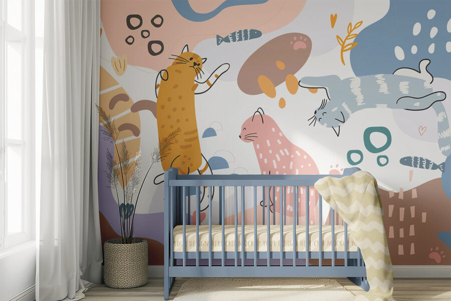 Proměňte jakýkoli prostor pomocí této veselé nástěnné malby s živou tlupou koček na barevném pozadí. Představte si líné odpoledne, kdy tyto roztomilé chlupaté kuličky vykouzlí okamžitý úsměv na tváři každému, kdo projde kolem. Hravý design dodává šmrnc rozmarům a skvěle se hodí do útulného zákoutí nebo třeba do světlého obývacího pokoje. Kočky se povalují, protahují a možná plánují další přestávku na svačinu – kdo by se u toho nezasmál? Díky nádherné rovnováze barev vytváří hřejivou, příjemnou atmosféru. Je to jako mít na stěně měkkou kočičí náruč!