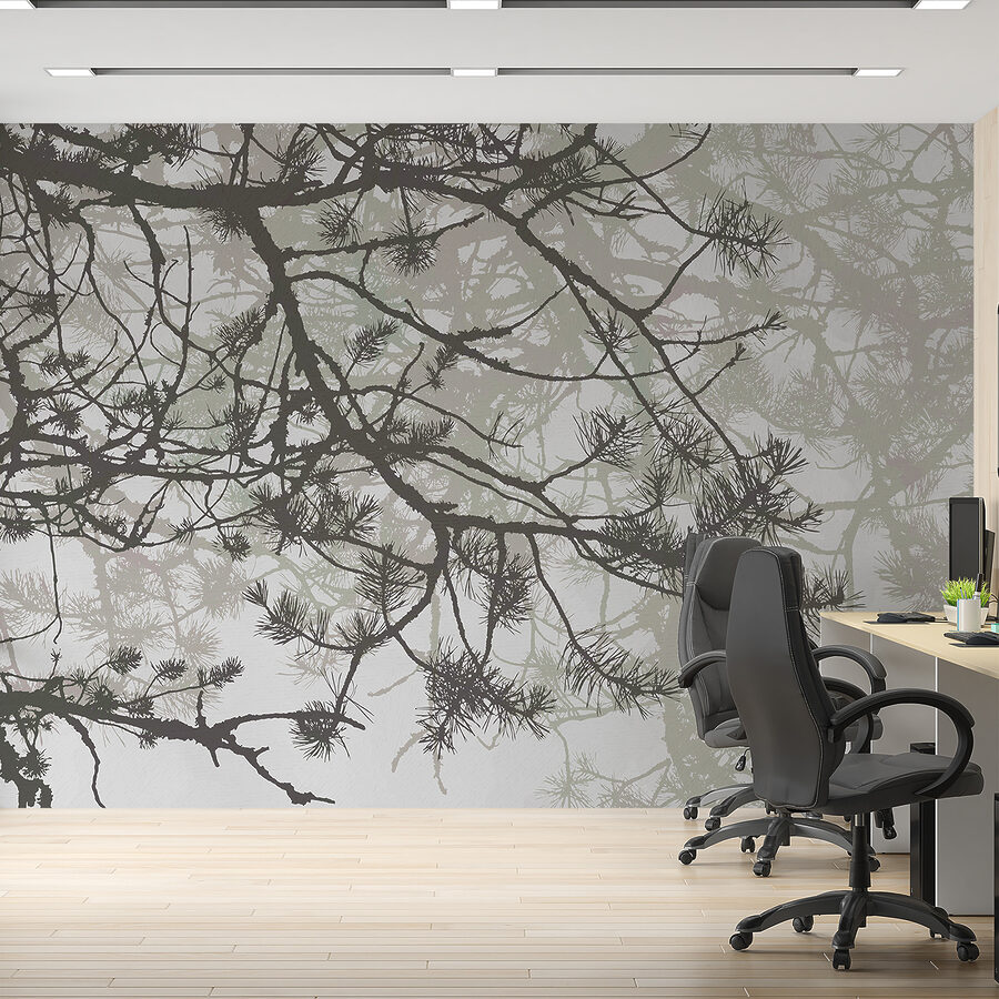 Proměňte svůj prostor v klidné lesní útočiště díky této okouzlující nástěnné malbě větví stromů zdobených jemným jehličím. Představte si, že každý den vstupujete do útulné chaty, i když jste právě ve svém obývacím pokoji. Jemná hra stínů a světla navozuje uklidňující atmosféru, která je ideální pro relaxaci nebo snění o dalším výletu. Je to téměř jako přenést venkovní prostředí do interiéru bez hmyzu! Navíc je to skvělý způsob, jak vyvolat konverzaci o přírodě, stromech a možná i o tom jednom nepovedeném kempování. Přijměte venkovní atmosféru a nechte svou stěnu vyprávět příběh.