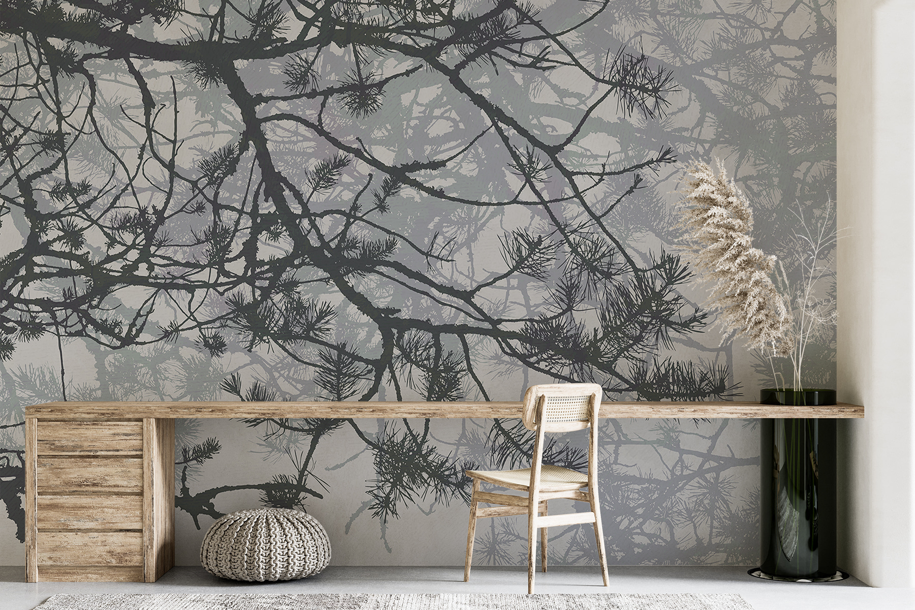 Proměňte svůj prostor v klidné lesní útočiště díky této okouzlující nástěnné malbě větví stromů zdobených jemným jehličím. Představte si, že každý den vstupujete do útulné chaty, i když jste právě ve svém obývacím pokoji. Jemná hra stínů a světla navozuje uklidňující atmosféru, která je ideální pro relaxaci nebo snění o dalším výletu. Je to téměř jako přenést venkovní prostředí do interiéru bez hmyzu! Navíc je to skvělý způsob, jak vyvolat konverzaci o přírodě, stromech a možná i o tom jednom nepovedeném kempování. Přijměte venkovní atmosféru a nechte svou stěnu vyprávět příběh.