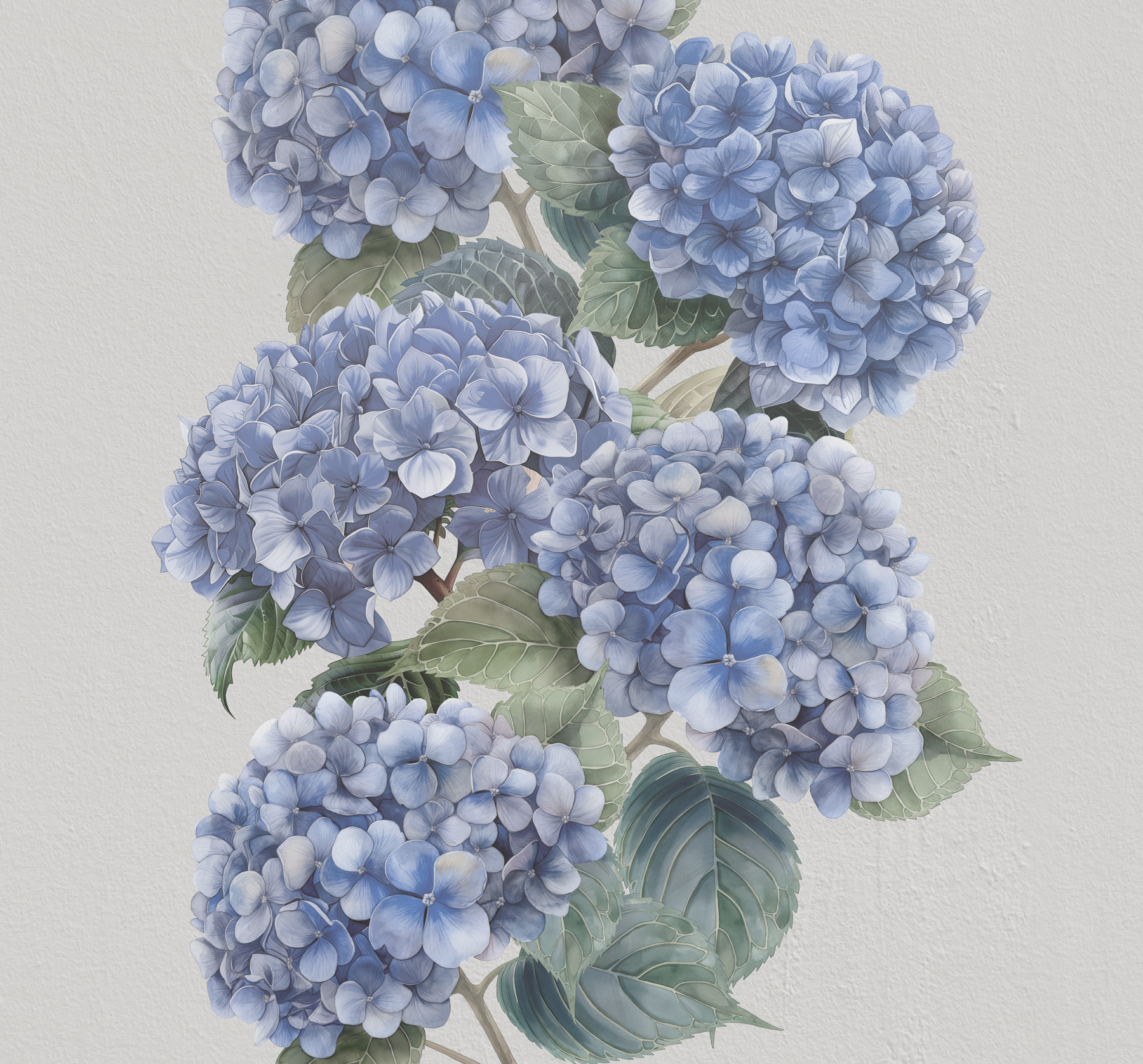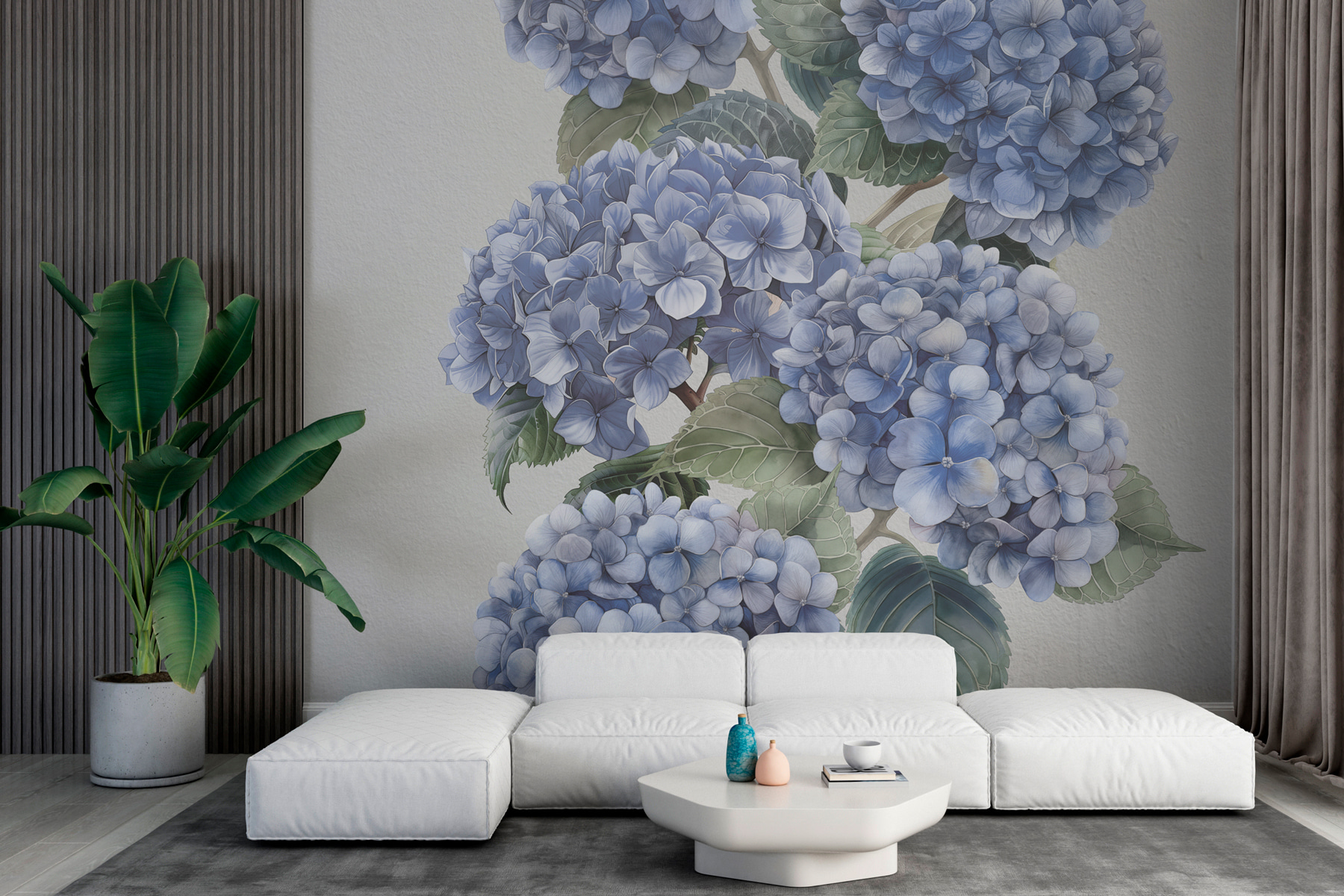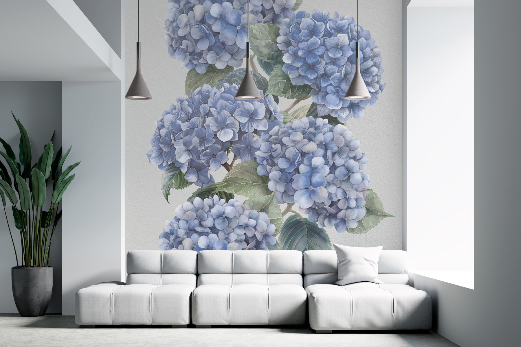 S touto úžasnou nástěnnou malbou s modrými hortenziemi v jemném květu proměníte každou místnost v klidnou zahradní oázu. Představte si, že vstoupíte do prostoru, který vám okamžitě zvedne náladu a kde každý okvětní lístek jako by šeptal tajemství letního dne. Je to jako mít kousek přírody přímo na stěnách. Jemné odstíny a složité detaily vybízejí k jemnému klidu, ideální pro útulná zákoutí nebo živá místa k setkávání. Přátelé budou žasnout nad vaší jedinečnou volbou dekorace a kdo ví, třeba někoho inspirujete k tomu, aby se začal věnovat zahradničení – nebo si alespoň trochu víc vážil krásy květin! Tato nástěnná malba je ideální pro milovníky přírody i umění a dodá každému interiéru osvěžující nádech.