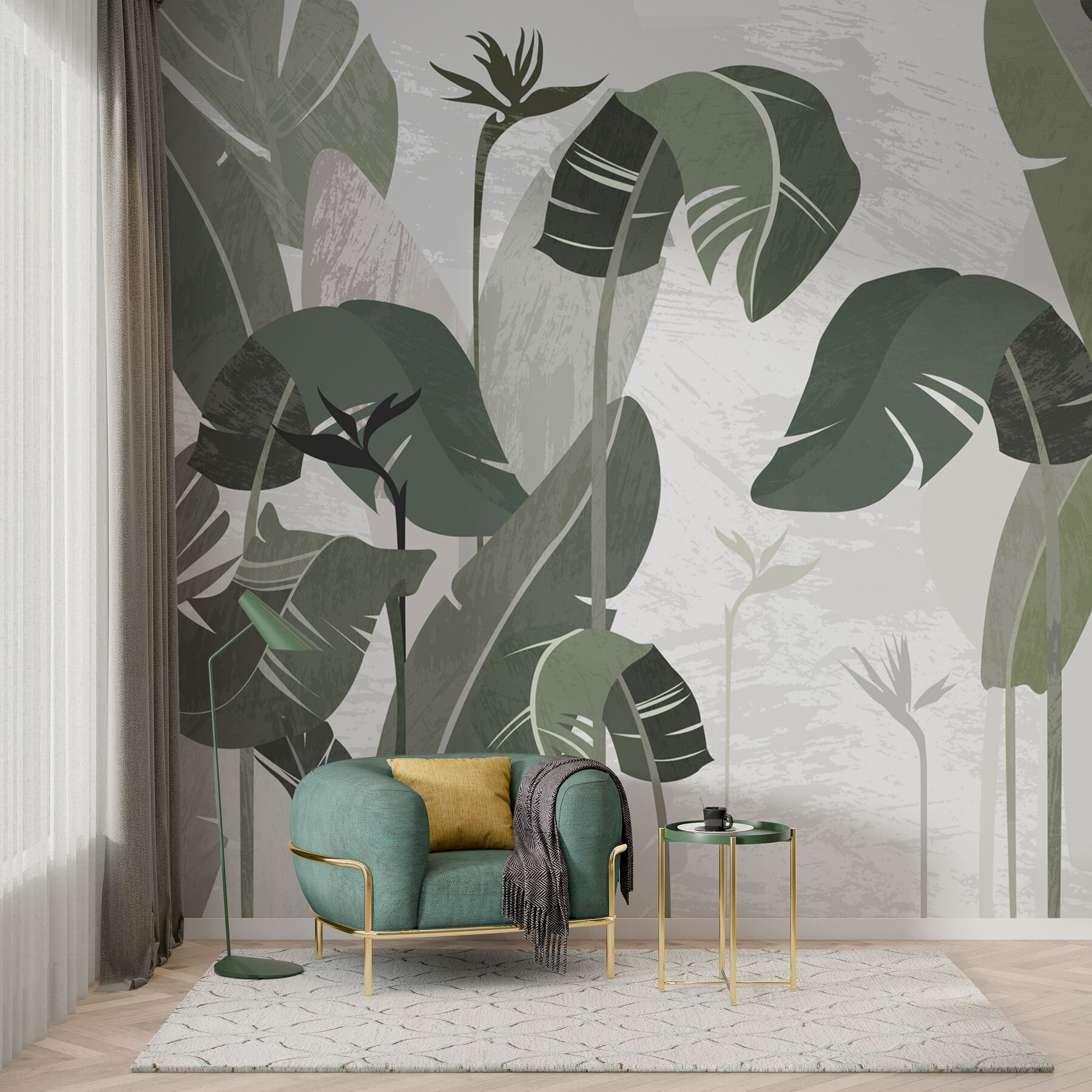 S nástěnnou malbou “Tropické listy ve stylových barvách” proměníte každou místnost v oázu klidu. Představte si to: vstoupíte do svého prostoru a bum! Tyto nadměrné listy vás zahalí do útulné, ale osvěžující atmosféry. Tlumená zeleň a jemné tóny téměř našeptávají klid přírody, takže se váš obývací prostor bude cítit jako sluncem zalité útočiště. Představte si, že popíjíte ranní kávu obklopeni touto svěží kulisou. Není to jen dekorace, je to únik. Ideální pro útulné večery nebo živá setkání. S touto fototapetou nebude vaše stěna jen stěnou – bude vyprávět příběh.