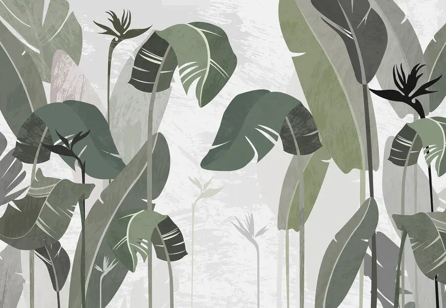 S nástěnnou malbou “Tropické listy ve stylových barvách” proměníte každou místnost v oázu klidu. Představte si to: vstoupíte do svého prostoru a bum! Tyto nadměrné listy vás zahalí do útulné, ale osvěžující atmosféry. Tlumená zeleň a jemné tóny téměř našeptávají klid přírody, takže se váš obývací prostor bude cítit jako sluncem zalité útočiště. Představte si, že popíjíte ranní kávu obklopeni touto svěží kulisou. Není to jen dekorace, je to únik. Ideální pro útulné večery nebo živá setkání. S touto fototapetou nebude vaše stěna jen stěnou – bude vyprávět příběh.