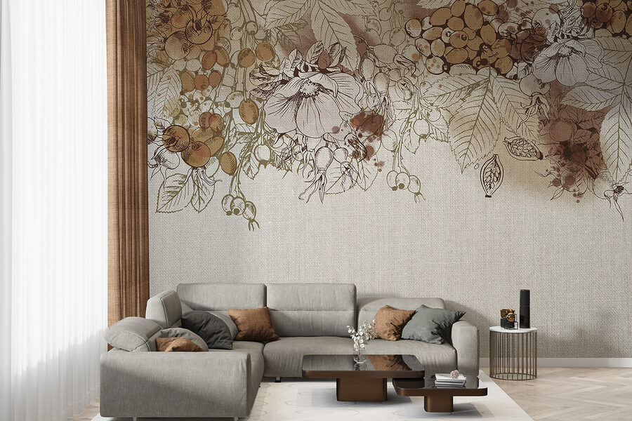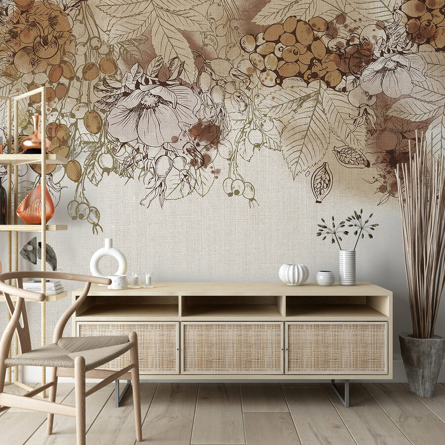 Proměňte jakýkoli prostor díky kouzlu podzimní sklizně v sépiových tónech. Tato nástěnná malba zachycuje podstatu podzimu díky jemným kresbám a teplé, zemité paletě, která působí útulně a příjemně. Představte si, že se schoulíte s šálkem teplého jablečného vína a přitom se díváte na tuto krásu na zdi – je to jako přenést dotek sklizně do interiéru! Hravá souhra jemných barev a složitých detailů inspiruje ke klidnému snění plnému přírody. Skvěle se hodí do obývacího pokoje a jistě vyvolá konverzaci. Milovníci přírody se budou cítit jako doma, jako by se procházeli poklidným sadem v pozdním podzimu a nasávali krásu přírodních plodů. Přidejte jej na své stěny a sledujte, jak váš prostor ožije teplem a charakterem!