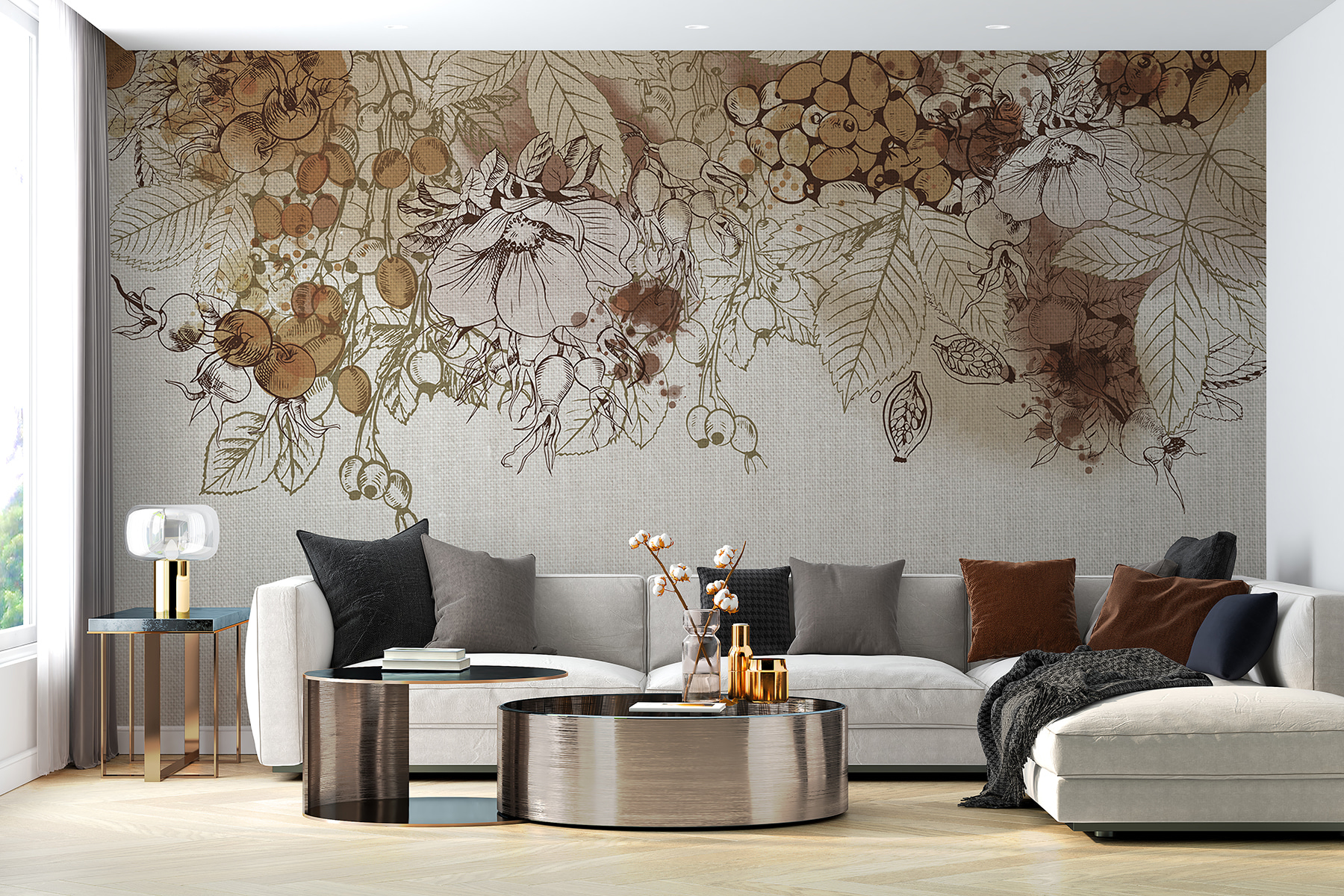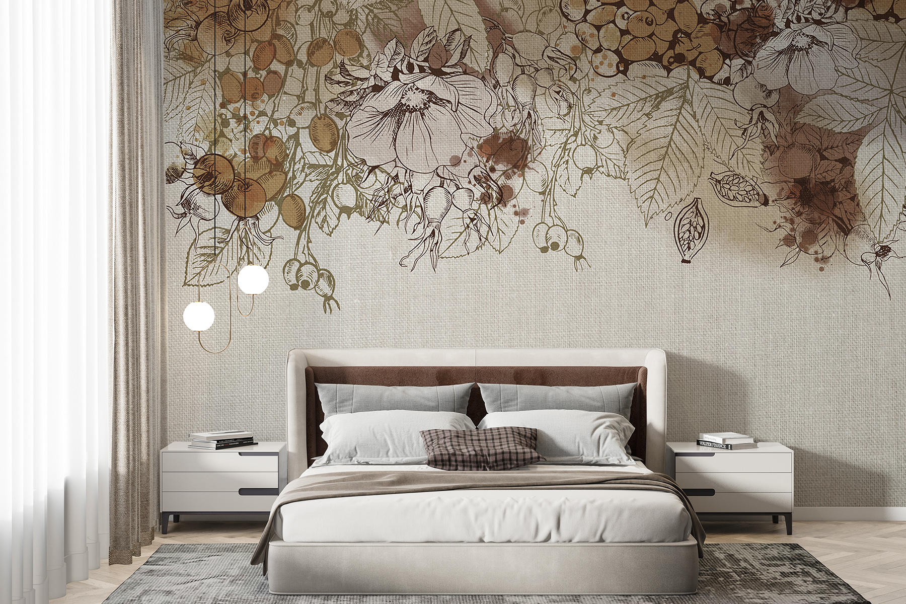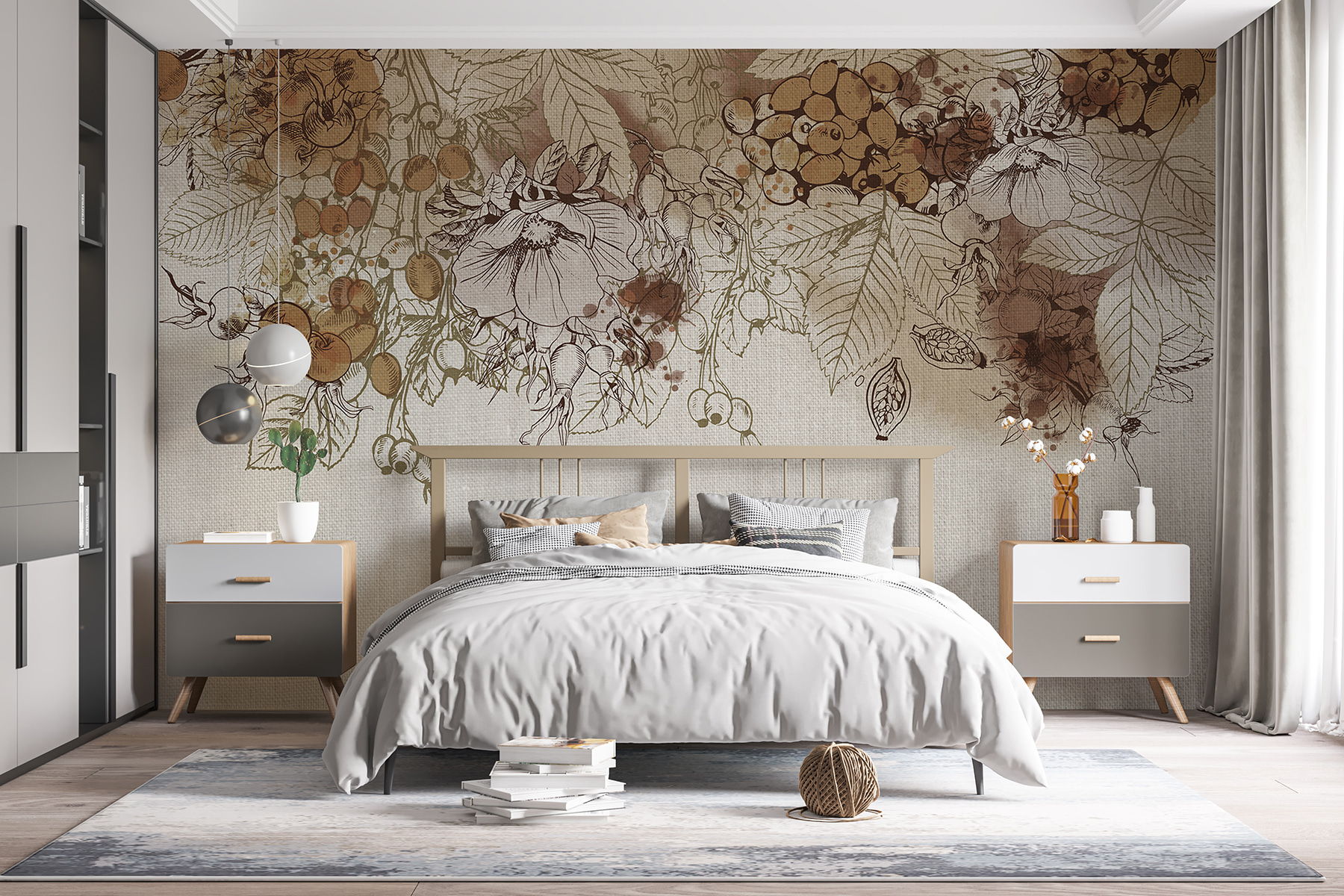 Proměňte jakýkoli prostor díky kouzlu podzimní sklizně v sépiových tónech. Tato nástěnná malba zachycuje podstatu podzimu díky jemným kresbám a teplé, zemité paletě, která působí útulně a příjemně. Představte si, že se schoulíte s šálkem teplého jablečného vína a přitom se díváte na tuto krásu na zdi – je to jako přenést dotek sklizně do interiéru! Hravá souhra jemných barev a složitých detailů inspiruje ke klidnému snění plnému přírody. Skvěle se hodí do obývacího pokoje a jistě vyvolá konverzaci. Milovníci přírody se budou cítit jako doma, jako by se procházeli poklidným sadem v pozdním podzimu a nasávali krásu přírodních plodů. Přidejte jej na své stěny a sledujte, jak váš prostor ožije teplem a charakterem!