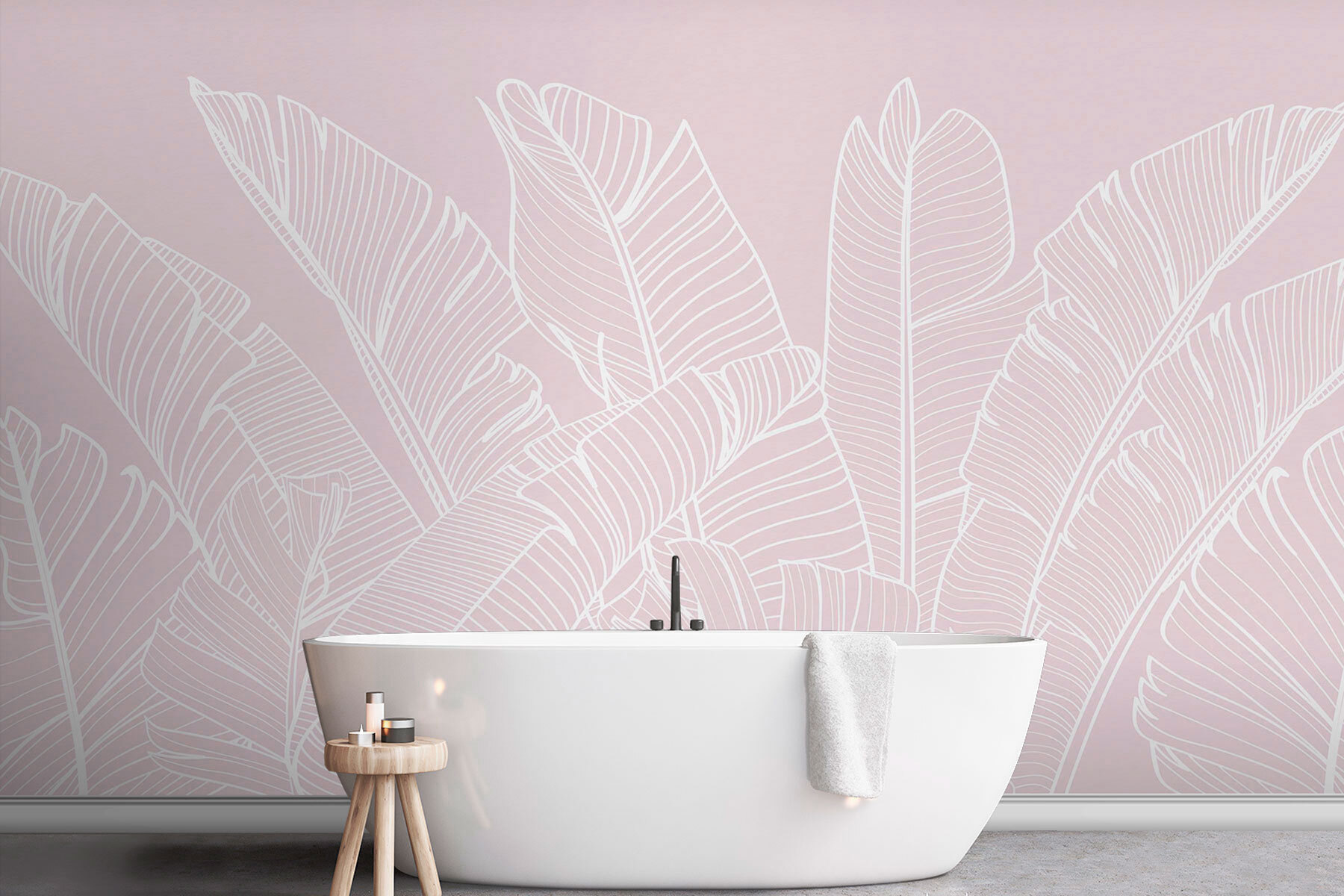 Proměňte svůj prostor v klidné tropické útočiště díky této elegantní bílé nástěnné malbě s tropickými listy. Představte si, že při každém vstupu do místnosti vstoupíte do svěžího ráje. Jemné růžové pozadí je jako hřejivé objetí, zatímco složité vzory bílých listů dodávají dotek sofistikovanosti a bez námahy rozzáří vaše stěny. Tato nástěnná malba není jen dekorací, je to atmosféra – ideální pro snění o sluncem políbených plážích a jemném mořském vánku. Přátelé se vás možná dokonce zeptají, jestli jste byli na dovolené, až ji uvidí! Ať už se nachází v útulném obývacím pokoji nebo v klidné ložnici, vybízí k relaxaci a vnáší do každodenního života závan čerstvého vzduchu.