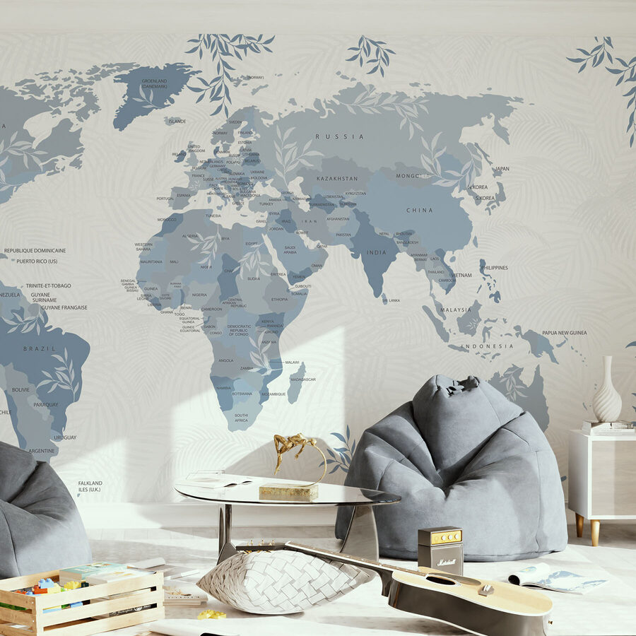 Ahoj! Podívejte se na tento krásný nástěnný tisk, známý jako “Fototapeta w08211v4”. Představte si ji jako dokonalou kombinaci mapy světa a uměleckého díla – super, co říkáte? Patří do kategorií “Nástěnné malby s mapou Země” a “Oblíbené nástěnné malby”. Se svými uklidňujícími odstíny modré a šedé je jako jemné globální dobrodružství pro vaše stěny. Malované listy se vznášejí nad kontinenty, takže nejde jen o mapu, ale o rozmarnou cestu. Představte si, jak popíjíte ranní kávu, přejíždíte prstem po vzdálených místech a sníte o další cestě… nebo vzpomínáte na tu poslední. Tato nástěnná malba je ideální pro každého, kdo má trochu toulavé srdce nebo rád zpestří svůj interiér něčím jedinečným. Promění každou místnost v okamžitý začátek konverzace – kdo ví, kam vás zavede další příběh? 🌿🌍