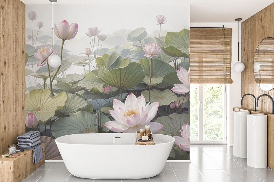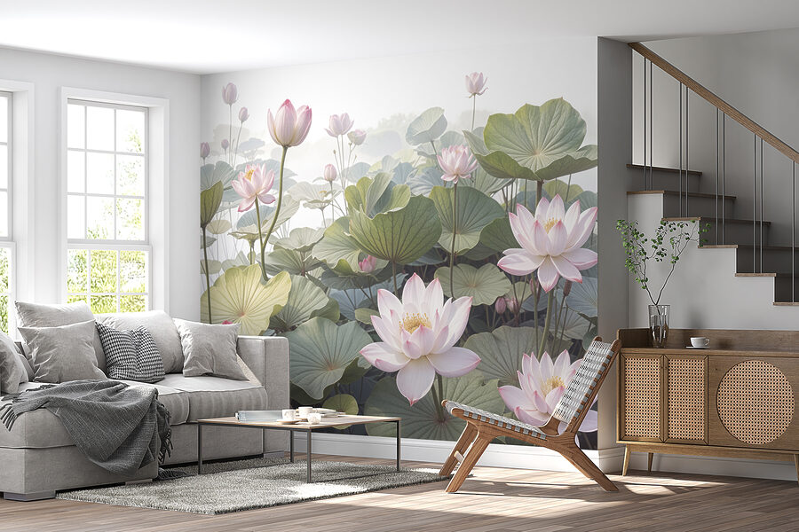 Snili jste někdy o vlastní zenové zahradě? Ponořte se do klidu s “Nástěnnou malbou w08221”! Tato nástěnná malba je ideální pro milovníky přírody a květin a zahalí váš pokoj do uklidňující oázy rozkvetlých lotosů. Představte si, že se probudíte a budete se cítit jako v klidném útočišti – ptáci cvrlikají, vane jemný vánek.