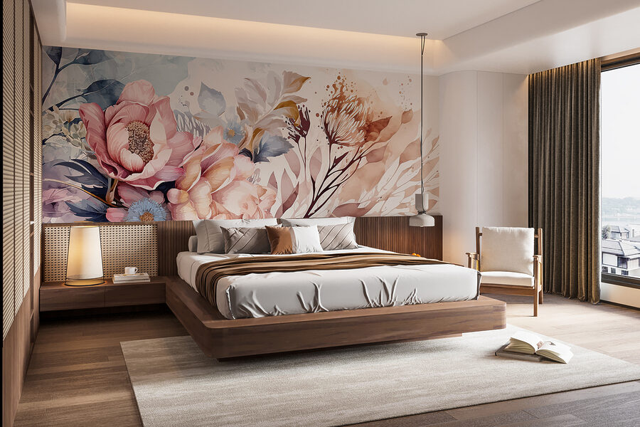 Představte si to: vejdete do místnosti a najednou vás přivítá tato nástěnná malba se svěžími víry květin a listů. Je to jako vstoupit do zasněné akvarelové zahrady – jen bez brouků. Ideální pro přidání nádechu přírody bez starostí se zaléváním rostlin. Působí útulným dojmem, jako když se zabalíte do oblíbené deky a popíjíte čaj. Přátelé by se mohli zastavit, aby obdivovali umělecký talent. Je to kouzlo přírody, zachycené a vytištěné – připravené proměnit každou zeď v příběh.