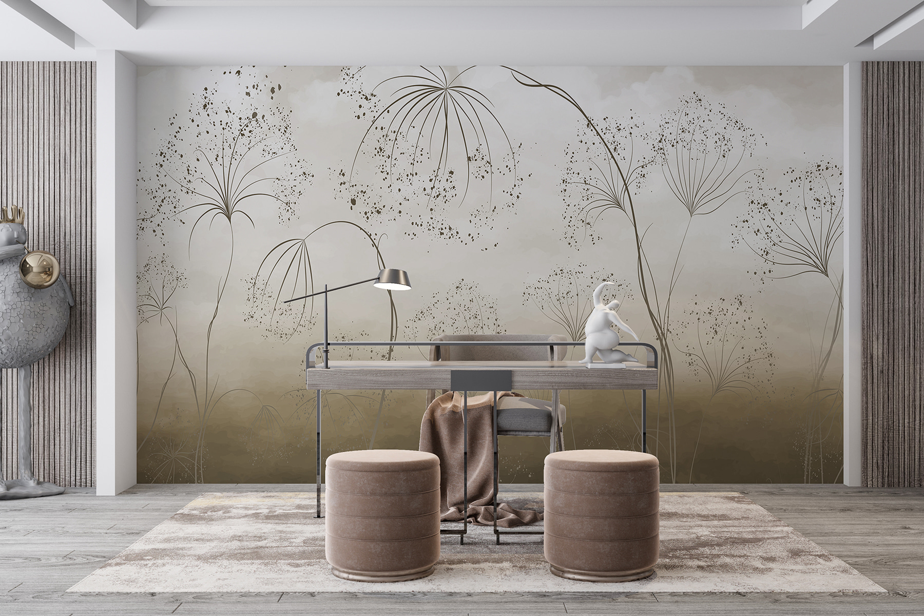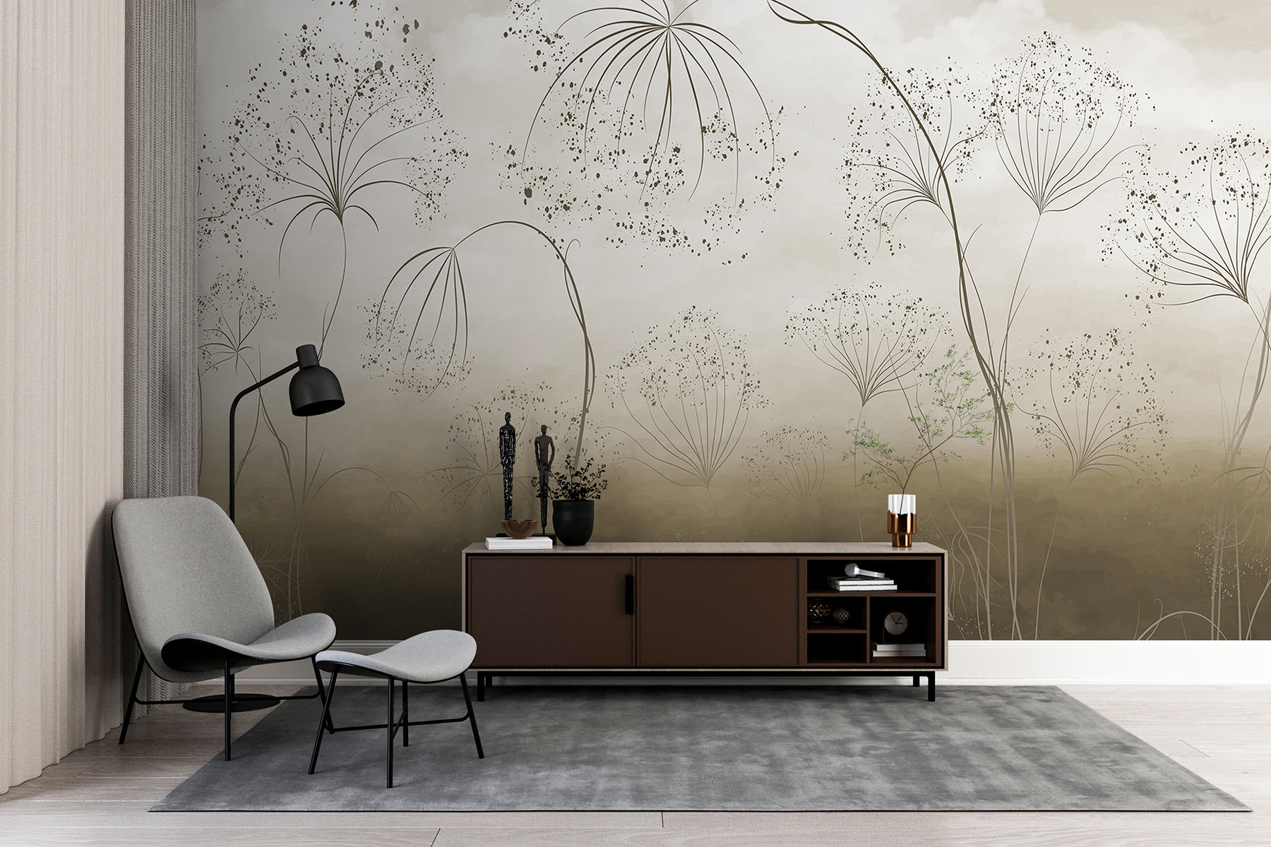 Proměňte každou místnost pomocí této rozmarné nástěnné malby, která zachycuje jemné kouzlo pampelišek tančících ve větru. Tyto jemné, plynulé tahy štětce evokují zasněnou krajinu a zvou přírodu přímo do vašeho domova. Představte si klidné ráno s kávou v ruce, jak jemná krása této fototapety rozjasňuje stěny. V jednu chvíli si možná představíte prosluněnou louku, v další se ztratíte v myšlenkách a budete snít o vzdálených místech. Skvěle se hodí do útulného obývacího pokoje nebo klidné ložnice – je to jako mít kousek přírody, který nikdy nezevšední! Jen si dejte pozor na pomyslná semínka pampelišek, která se vznášejí kolem.