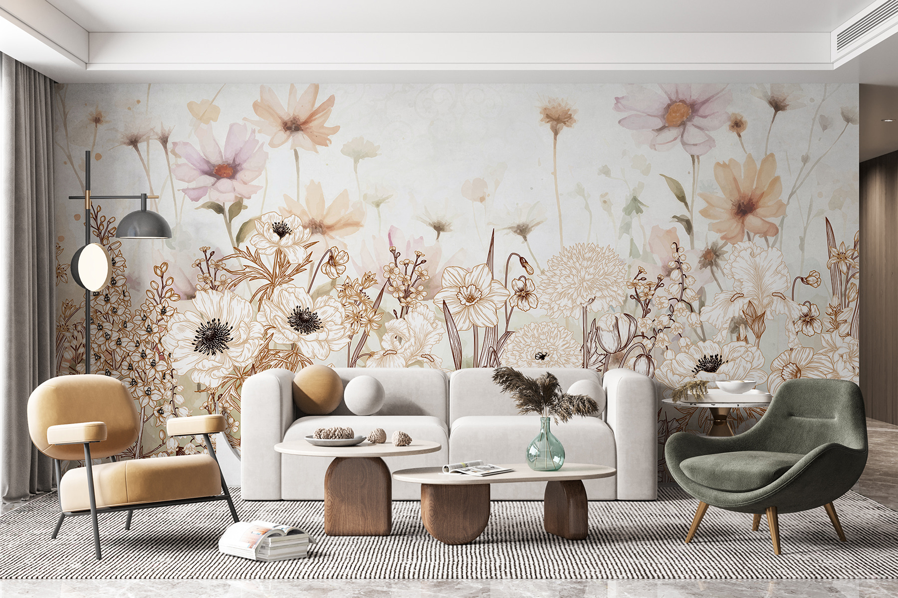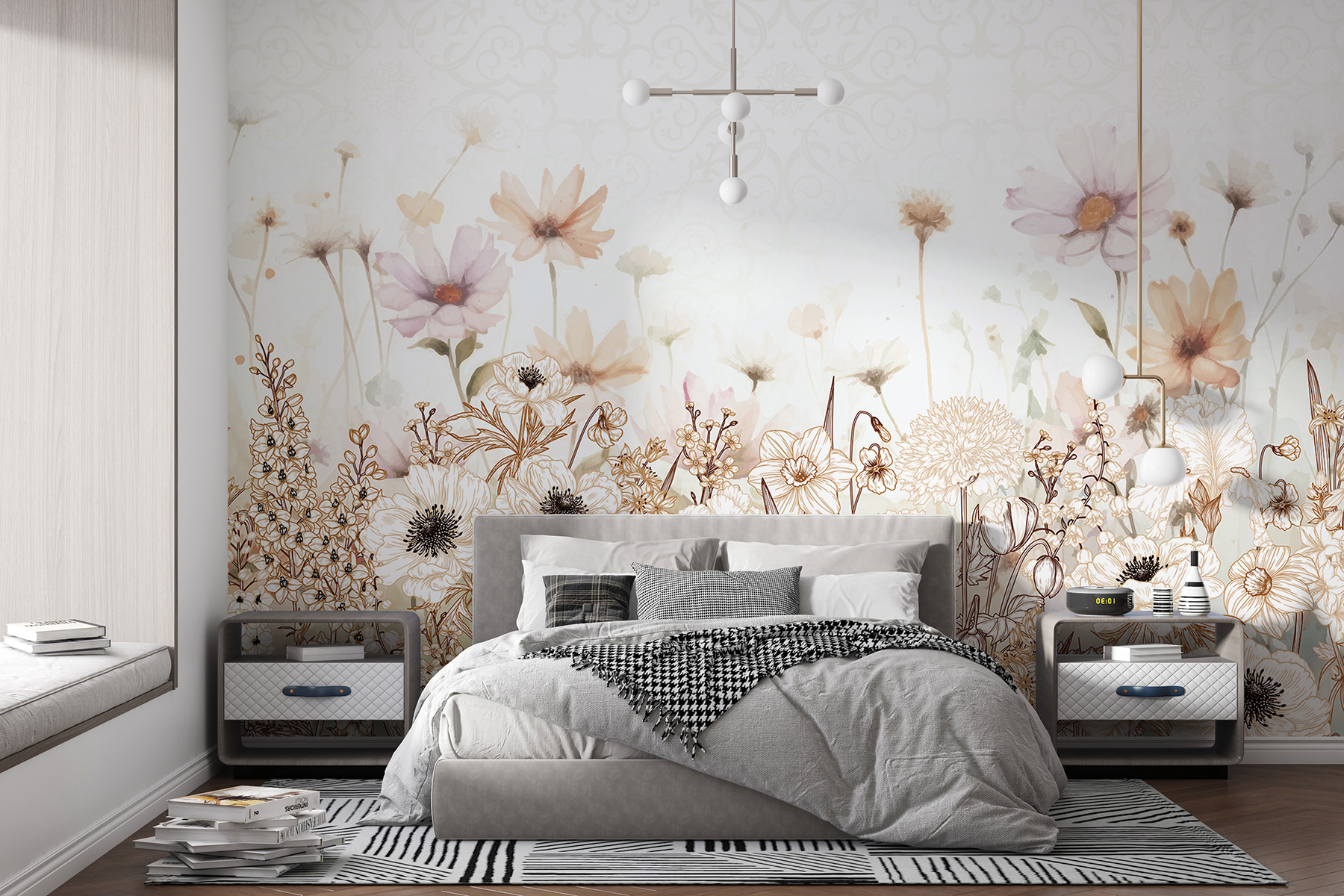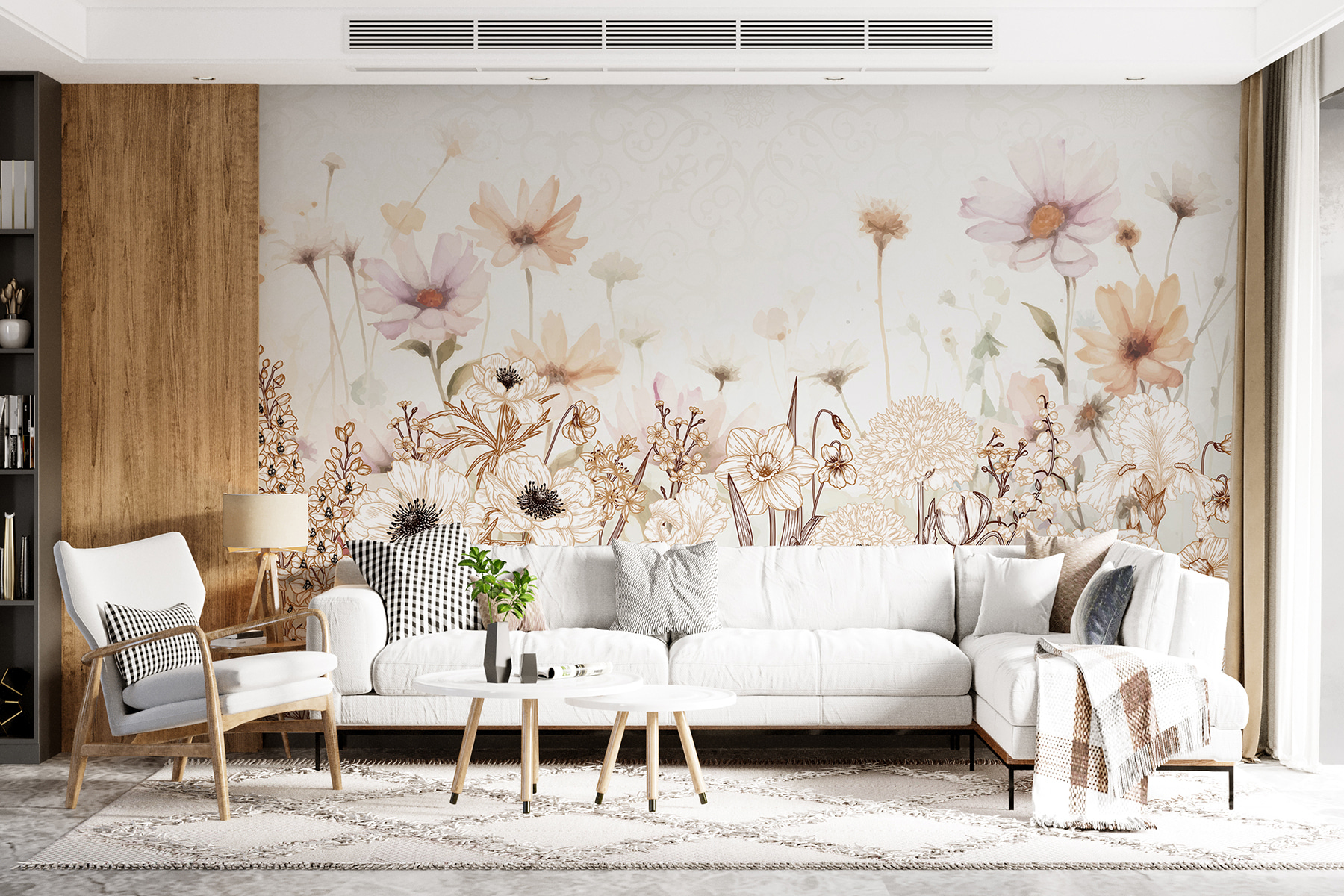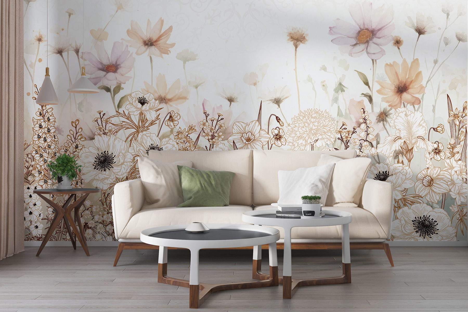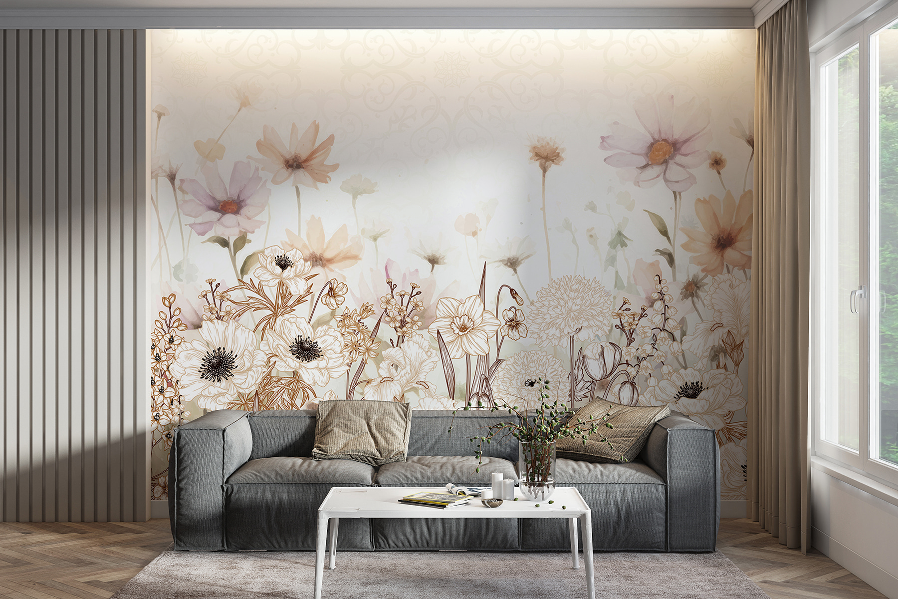 Proměňte každou místnost v klidné útočiště s “Éterickými květy v tlumených výrazech”. Tato nástěnná malba obsahuje snovou směs akvarelových květů, které tančí po stěně a šeptají příběhy o jarních loukách a jemném vánku. Představte si, že se probouzíte s touto něžnou paletou pastelů, kde každý květ působí jako malé objetí pro vaše smysly. Ideální pro útulný čtecí koutek nebo uklidňující atmosféru ložnice. Je to jako být obklopen přírodou bez otravných alergií. Věřte mi, že s touto krásou kolem sebe těžko pocítíte něco jiného než radost. Jen se nedivte, když vám přátelé budou stěnu chválit víc než váš nový svetr!