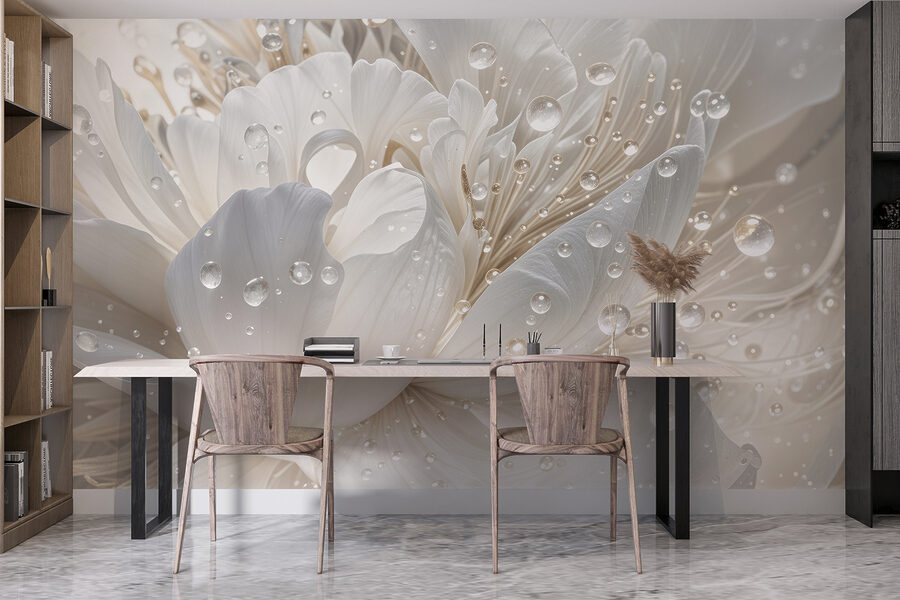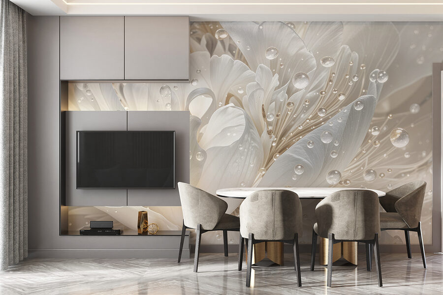 Představte si, že vejdete do místnosti, kde se ve slunečním světle třpytí okvětní lístky políbené rosou, téměř jako tajná zahrada v interiéru. Tato nástěnná malba není jen dekorací na zeď – je to zlepšovák nálady. Ideální pro ty, kteří vidí krásu v maličkostech, jako jsou kapky deště ulpívající na květu. Možná se přistihnete, že popíjíte kávu, díváte se na ni a cítíte, jak vás zaplavují klidné vibrace. Je to ten jemný šepot přírody, který pomáhá prostorům – velkým i malým – rozkvést teplem a kouzlem. A taky to dokáže rozproudit konverzaci!