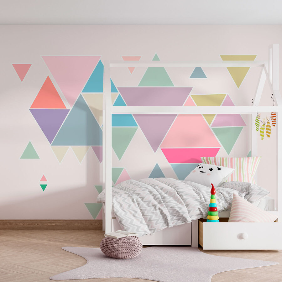 Představte si to: exploze kaleidoskopu přímo na vaší zdi. Tato nástěnná malba “Skupina trojúhelníků” kombinuje jemné pastely a odvážné tvary do abstraktního díla, které si přímo říká o pozornost. Ideální pro dny, kdy váš pokoj potřebuje oživení – nebo když už vás omrzí obyčejná béžová. Představte si, že popíjíte kávu a trojúhelníky vám šeptají příběhy o dávno zapomenutých triumfech z hodin geometrie. Je to jako jóga pro oči – uklidňující a zároveň povzbuzující. Pověste si ho, nechte se zahrnout komplimenty a užívejte si každodenní dávku barevného chaosu!
