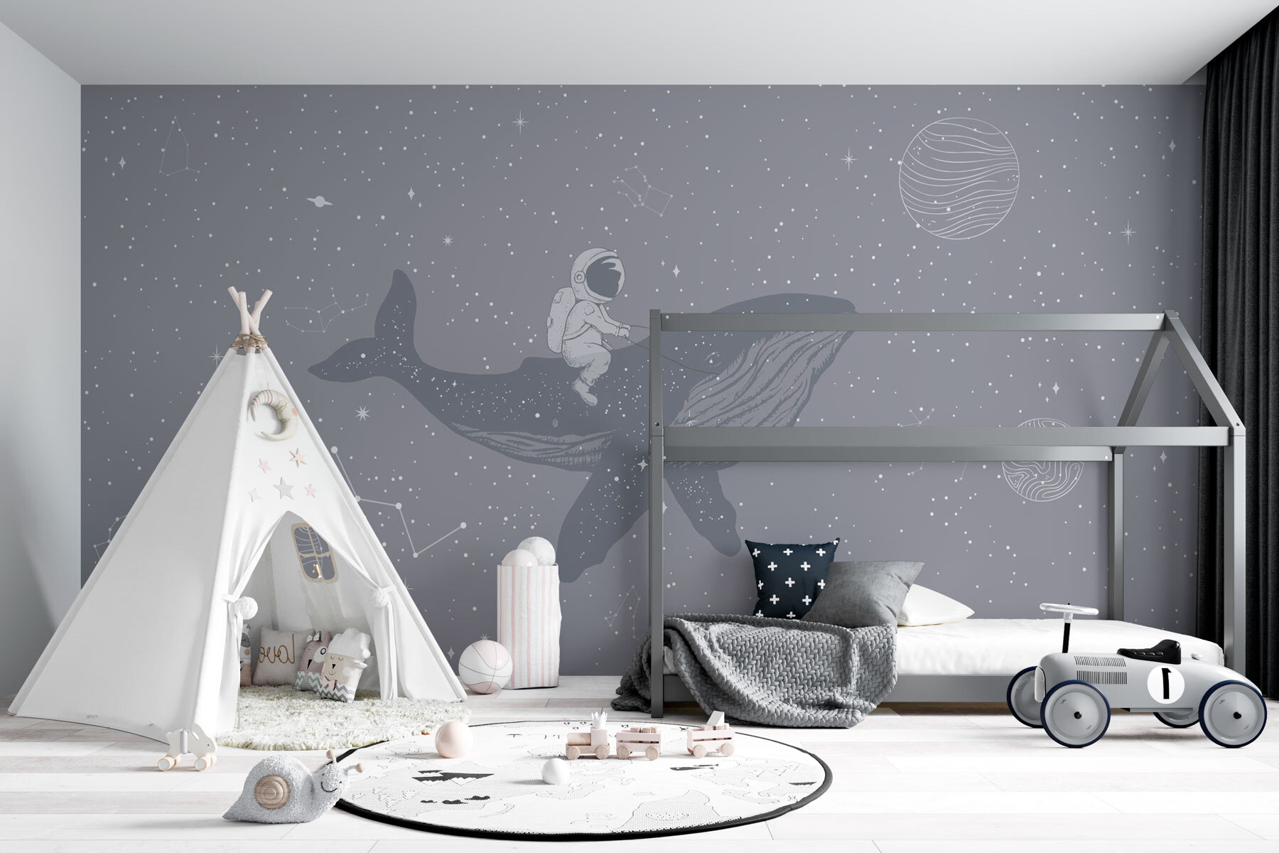 Představte si, že vejdete do místnosti a uvidíte astronauta, který se ve vesmíru projíždí na velrybě. Fototapeta jako z pohádky na dobrou noc! Jako by se vesmír rozhodl smíchat svá nejlepší zvířata a galaxie a vyrazit na projížďku do rozmarů. Ideální pro snílky a hvězdáře, promění každou stěnu v mezihvězdnou mořskou krajinu. Pociťte kouzlo – vznášejte se vedle hvězd a planet, a to vše při domácím odpočinku. Kdo by potřeboval televizi, když vás vítají vesmírné vibrace a obří přátelská velryba? Jste připraveni na dobrodružství? Ponořte se!